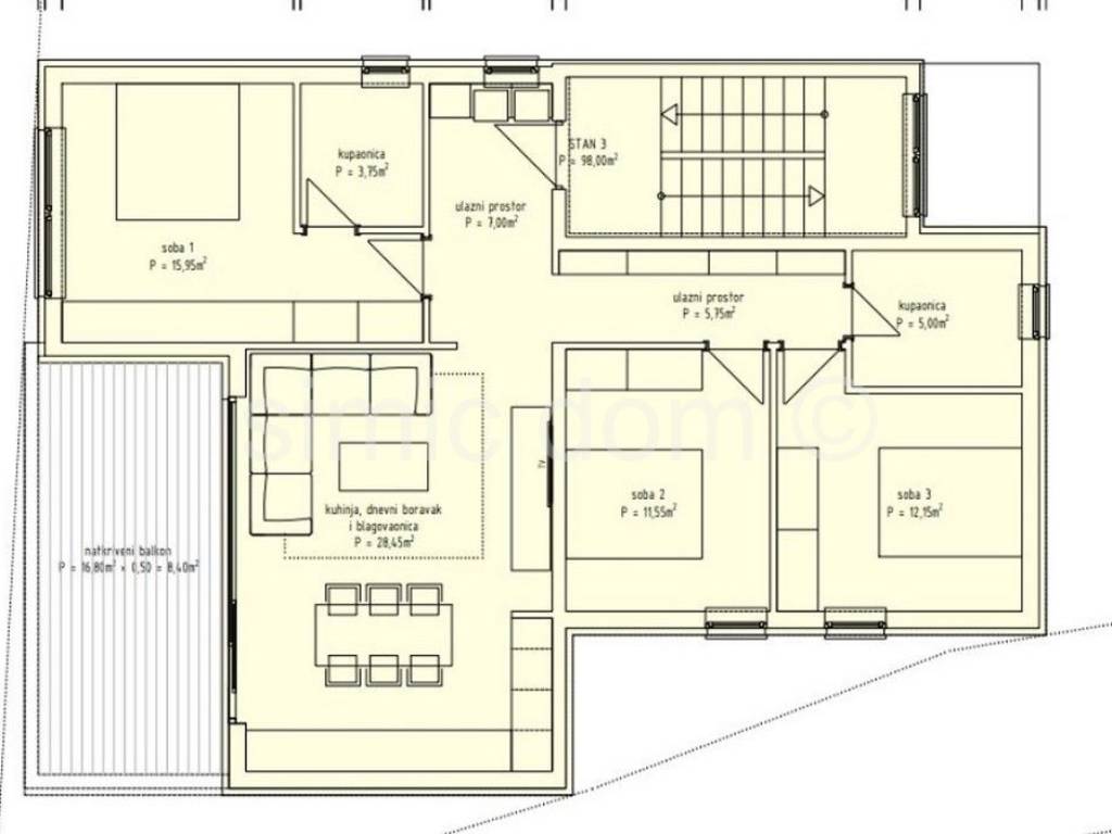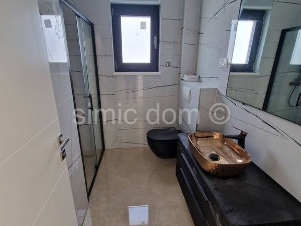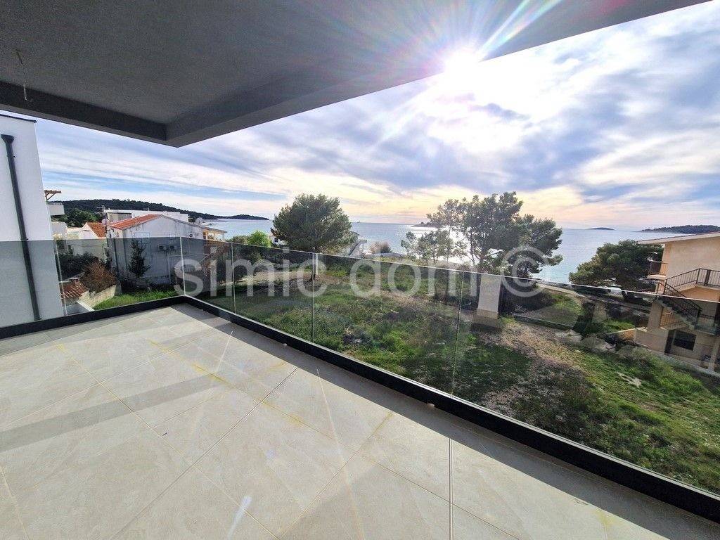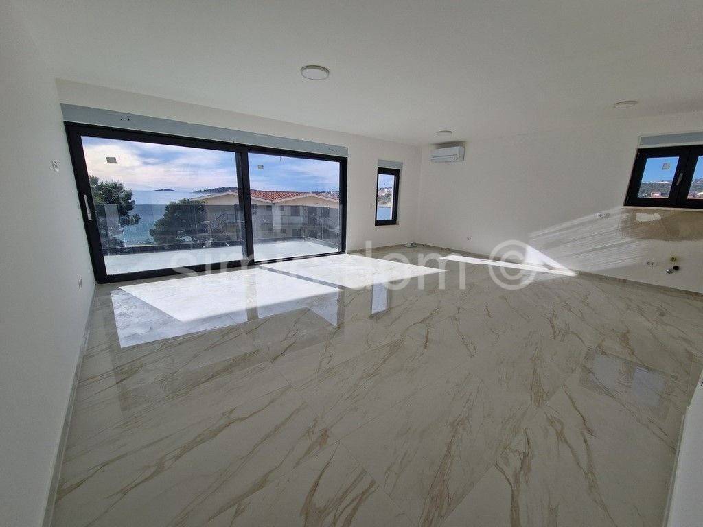 We mediate in the sale of a superbly positioned luxury apartment, only 20m from a beautiful pebble beach. This spacious apartment is located on the last, second floor of a smaller building with 3 residential units. Total net usable area of the apartment is 98m2, i.e. the floor area is 106.40m2. The apartment consists of a hallway, three spacious bedrooms, two bathrooms, one of which is en-suite, a kitchen and a living room with access to a large terrace with a superb view of the sea. The modern and urban design of the apartments will give the owners a truly luxurious feel. Spaciousness, plenty of storage space, high glass walls, first-class ceramics, top-quality air conditioning, underfloor heating in the bathrooms and high-quality carpentry are just some of the features that this apartment will have. The apartment is ready for moving in.