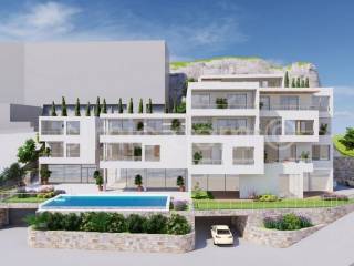 We are mediating the sale of a very spacious apartment in a location 100m from a beach. The area of the apartment is 107m2, it is located on the second floor, and consists of an entrance hall, two bedrooms with bathrooms, an additional guest bathroom, a beautiful living room with kitchen and dining area, a loggia facing south and an impressive terrace facing southeast. The construction is quite advanced, and the building itself is part of a residential and business complex that will offer a gym, polyclinic and a number of health facilities. The construction is done exclusively with the highest quality materials, while upon completion it will have heat pumps with underfloor heating, air conditioners in all rooms, top-quality sanitary ware and ceramics... The investor is a legal entity, the price of the apartment includes VAT and the completion is planned for the end of 2024. The purchase of a garage parking space is mandatory (25,000). Considering the very attractive location near the sea (Trogir is a 5-minute drive away) and the exceptional quality of construction, the apartment is a great investment. Ownership in order.