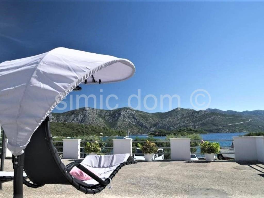 For sale is a very spacious house with 4 apartments, in a very attractive location in the first row to the crystal sea of a quiet bay on the island of Korcula. The surface of the house is about 290m2, and it is located on a plot of 900m2, thus enabling a beautiful, spacious exterior with a well-maintained garden full of Mediterranean vegetation. The house is spread over two floors - ground floor and the first floor. On the ground floor there is a 120m2 apartment with a hallway, a kitchen, a dining area, two bedrooms, two bathrooms and a great terrace with a pool (30m2 pool area) that offers a spectacular view of the sea and the surrounding area. On the ground floor there is another apartment with one bedroom, a hallway, a kitchen, a dining room and a bathroom. On the first floor there are two apartments. Each with two bedrooms, a kitchen, a bathroom and a dining area. These two apartments share a terrace that also has a beautiful view of the sea. The attic is currently unfurnished and can be another apartment. The house also has a large garage. Since it is being sold fully equipped and furnished, the house is an excellent choice for rental business, while its fantastic, quiet location in the first row to the sea guarantees peace of mind if you choose this house as a family destination. Ownership clean.