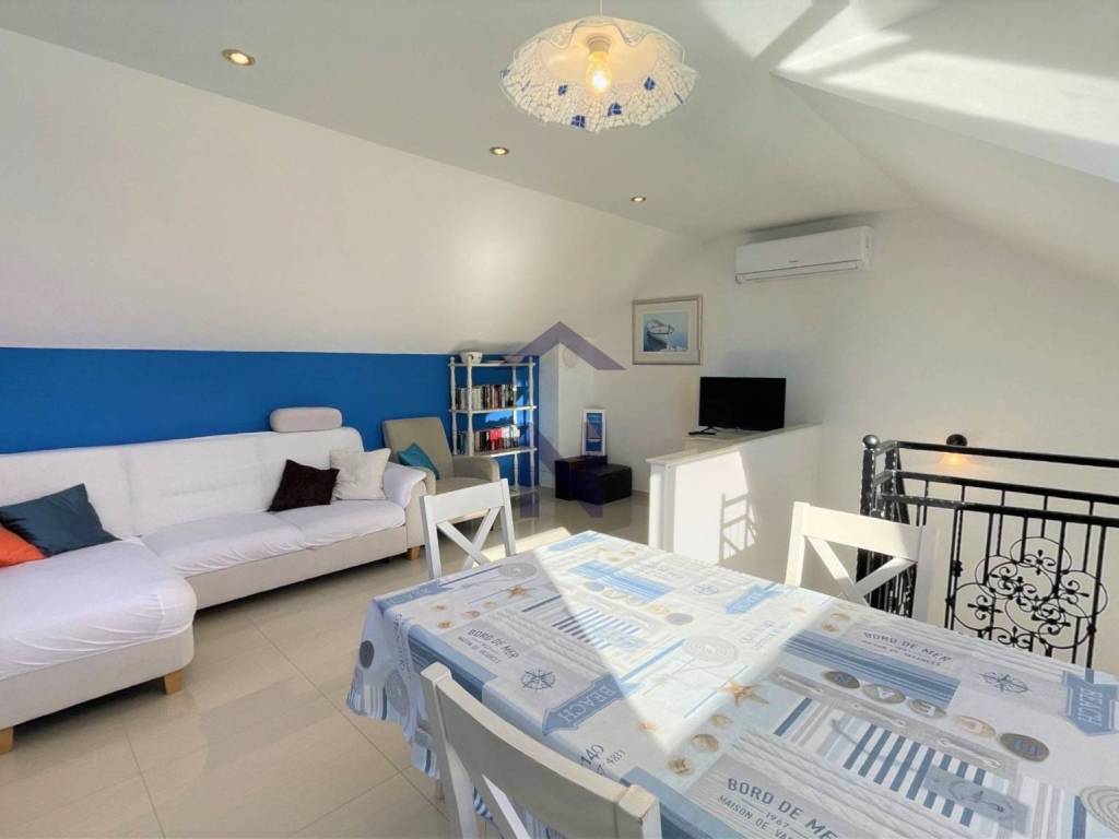 U prizemlju se nalazi dvosoban stan (dnevni boravak, kuhinja, kupaona, spavaća soba i terasa). Na prvom katu se nalaze hodnik, dvije spavaće sobe i kupaona. Drugi kat se sastoji od velikog open space prostora koji uključuje dnevni boravak, kuhinju i spremište, kao i balkon sa prekrasnim pogledom na more.