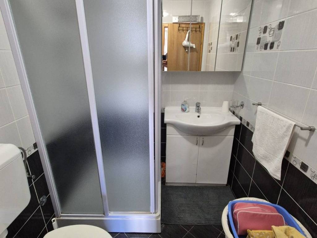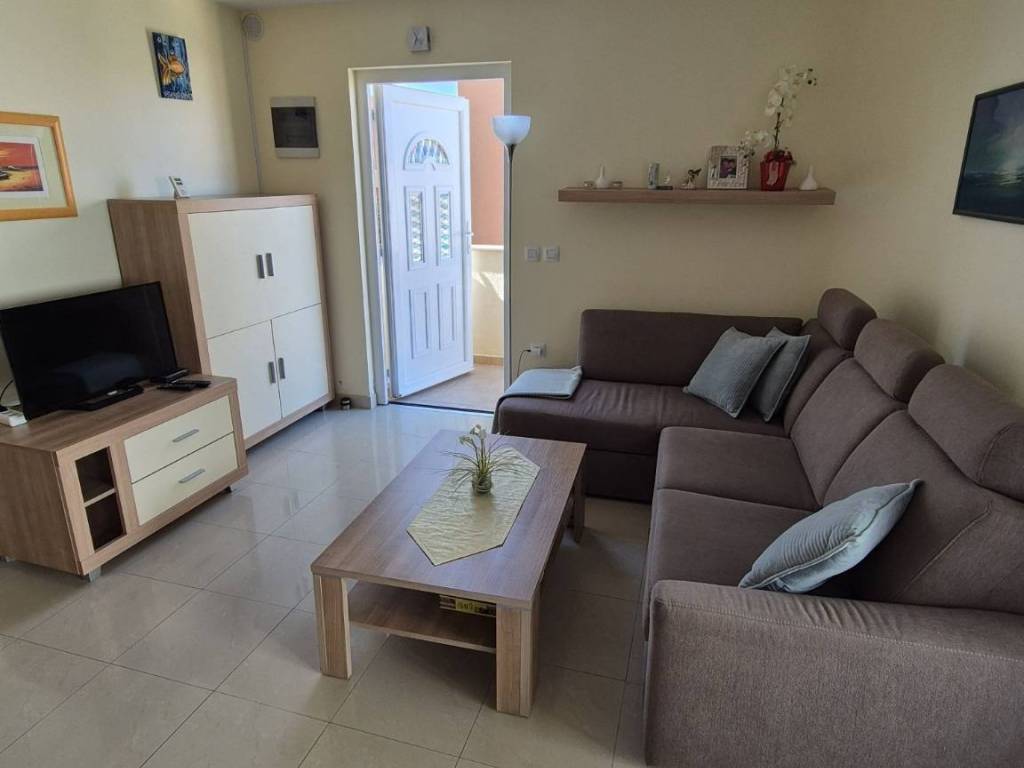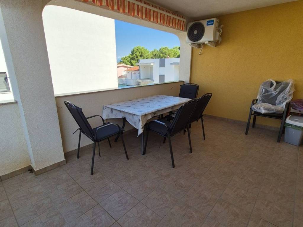 South side of the island of Vir, beautifully decorated apartment on the first floor, usable area 47.60 m2 according to the floor plan. It consists of a nice large covered terrace, kitchen with living room and dining room, bathroom and one bedroom. Air-conditioned, fully furnished, and sold as such. It is connected to the city water supply and sewage system, and is only 50 meters from the sea and the beach. The beach is suitable for all age groups.