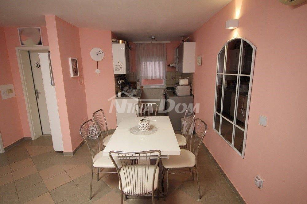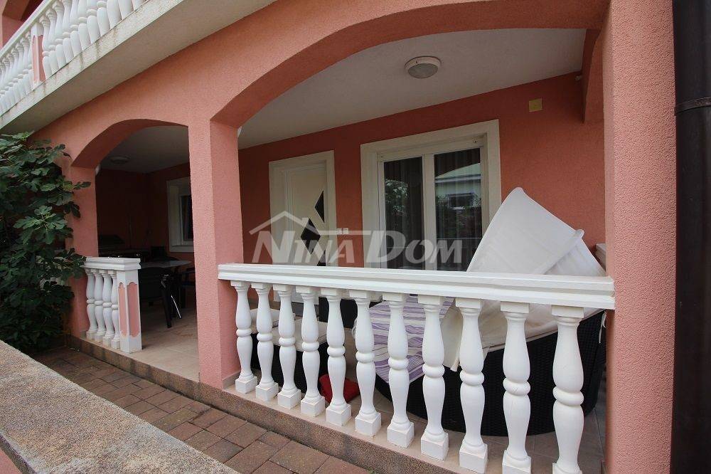 The southern side of the island of Vir, an apartment that is only 100 meters away from a beautifully decorated beach. The apartment is located on the ground floor with one parking space.It consists of a kitchen, dining room, living room, bathroom, terrace and two bedrooms with a total usable area of 66.24 m2. with accessories with a usable area of 10.31 m2, all with a total usable area of 76.55 m2 according to the floor plan.The apartment is air-conditioned, connected to the city water supply and sewage system, electricity network, and is being sold partially furnished.