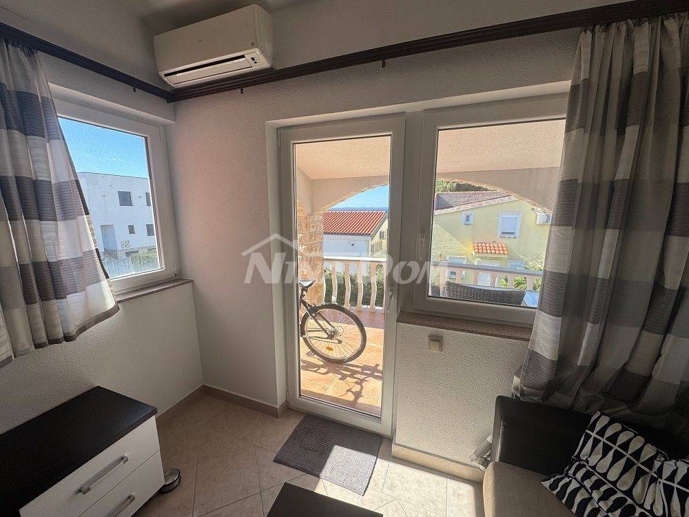 Apartment on the south side of the island of Vir, only 60 meters from the sea. It is located on the first floor, and consists of a terrace, kitchen with living room, hallway, one bedroom, bathroom.The apartment also has one parking space. Air-conditioned.The apartment is legalized, condominium. with independent electricity connection,water: 3 m3 liter tank for water that is brought in,