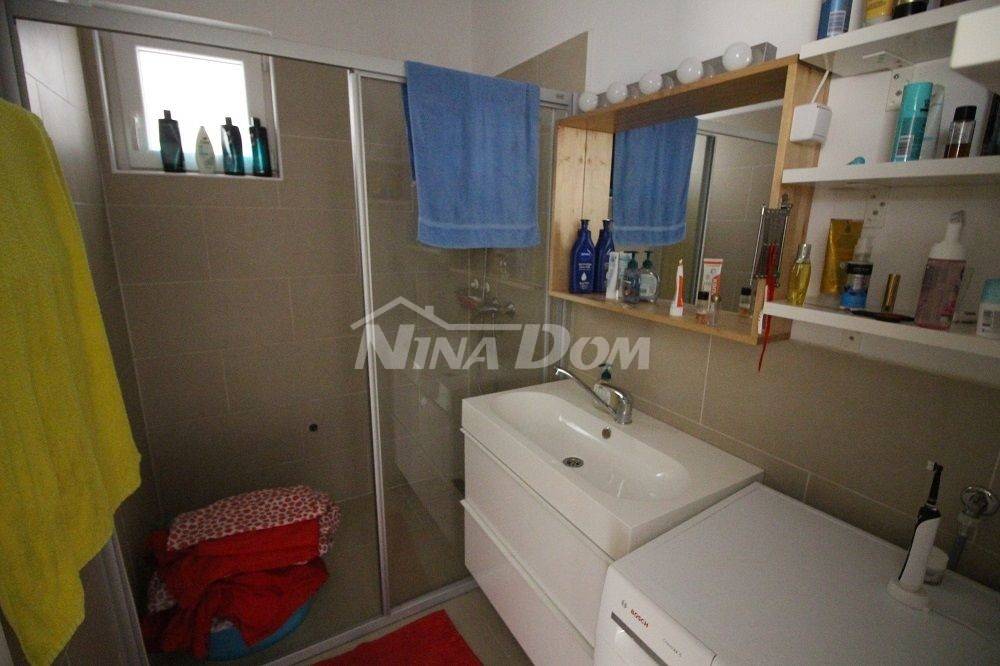 Kat: hodnik, kupaona, dvije sobe, kuhinja s dnevnim, natkrivena terasa. Klimatizirana, sobe i kupaonica na katu posjeduju podna grijanja.
