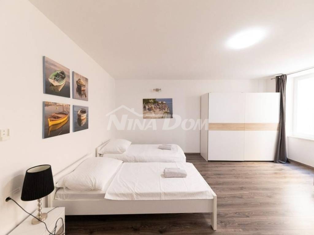 A completely renovated apartment of 130 m2 is for sale in the center of Zadar. The specialty of this apartment is that it has a separate entrance, thus providing maximum privacy and peace. It consists of two floors: on the first floor there is an entrance hall, while on the second floor there is a spacious living room with kitchen and dining room, four comfortable bedrooms, a laundry room and two toilets. The apartment is sold fully furnished, which means it is ready for immediate moving in or starting a business.