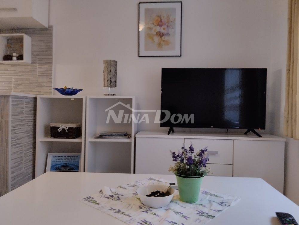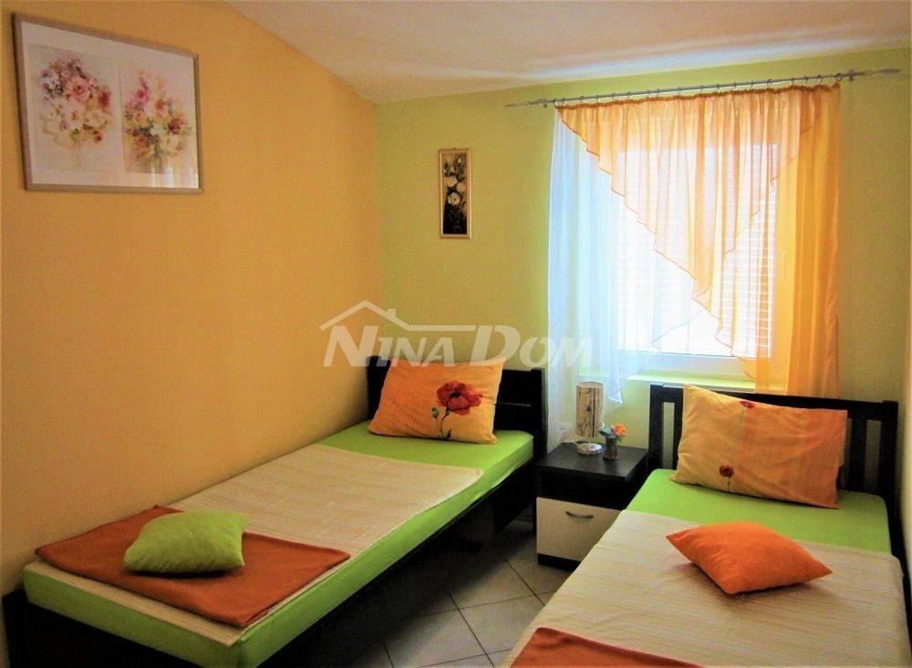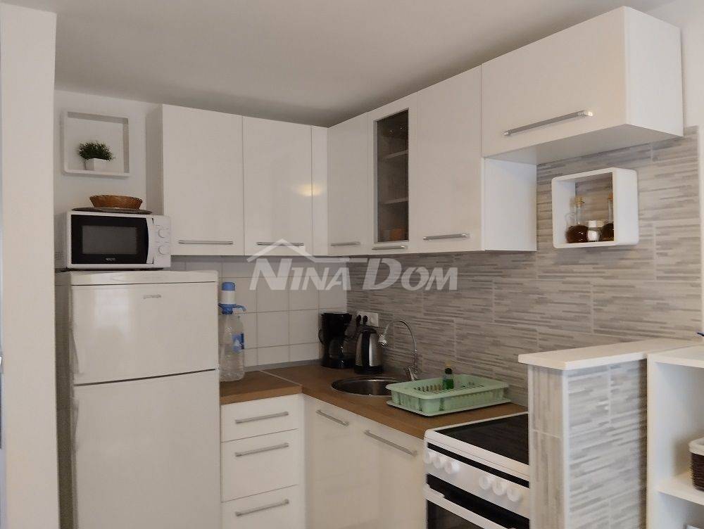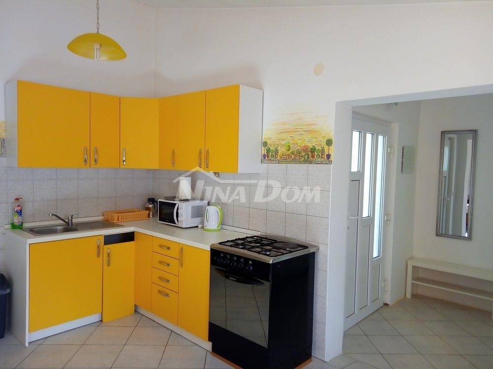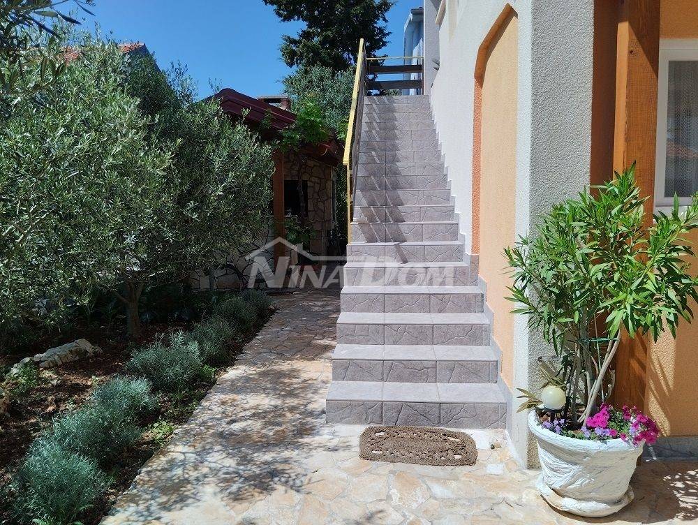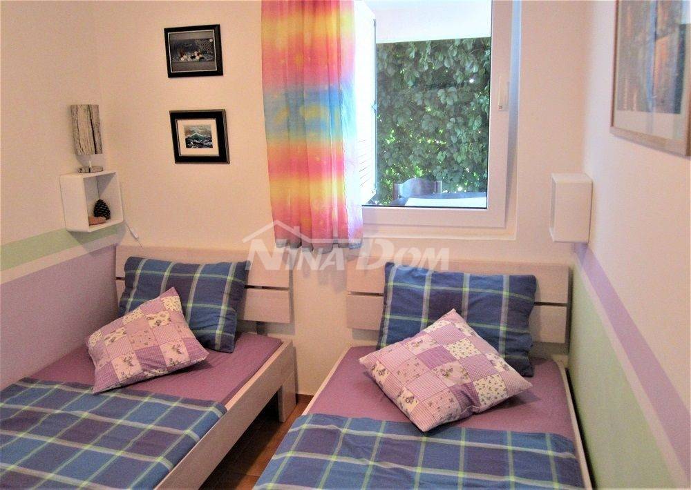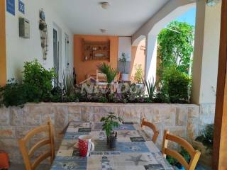 S gornje terase se pruža lijep pogled na more. Klimatizirana, za stalni boravak ili boravak u zimskim mjesecima posjeduje peć na drva na gornjoj etaži.