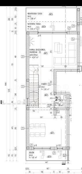 On the second floor there is a kitchen with a dining area with access to a balcony, a living room with access to a covered terrace, a toilet and a staircase with a total area of 70.78 m2.