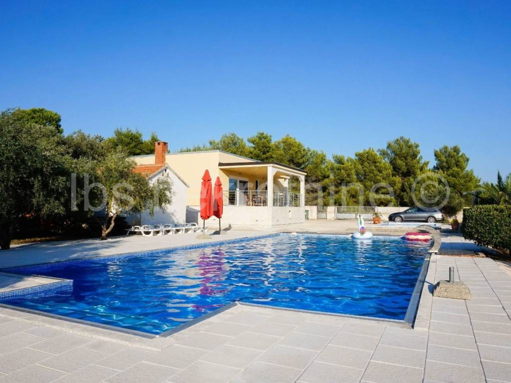 Posredujemo pri prodaji kuće na Viru s dva bazena i zemljištem od 2522m2. Villa za idiličan odmor u održavanoj zelenoj oazi otoka Vira na parceli površine 2522m2 s 52 stabla maslina. Udaljenost do mora na gradske plaže iznosi oko 500m ili 6-7 minuta pješice. Kuća ima 120m2 stambene površine i sastoji se od kuhinje, blagovaonice, dnevnog boravka, dvije spavaće sobe od kojih jedna ima vlastito kupatilo, kupatila i velike terase s koje se pruža pogled na maslinik i more. U podrumu kuće se nalazi jedna prostorija u kojoj se nalazi bazenska tehnika. Ispred same kuće se nalaze dva bazena od kojih manji ima površinu od 30m2 s dubinom 80cm i veliki od 105m2 i dubinom 155cm a u koji su ugrađeni sustavi za protustrujno plivanje, klupa za hidromasažu i tuš/vodopad. Pored kuće se nalaze dva pomoćna objekta i to ljetna kuhija s roštiljem/kaminom i ostava za alat. Razgledavanje nekretnine je moguće tek nakon potpisivanja Agencijskog ugovora a sve u skladu s Zakonom o prometu s nekretninama i Zakonom o zaštiti osobnih podataka. Agencijska provizija iznosi 3% +PDV.