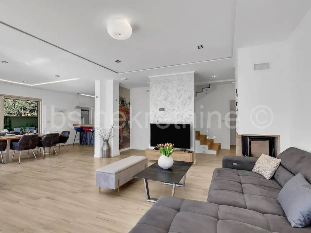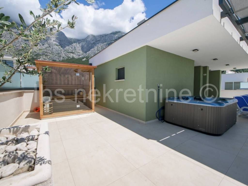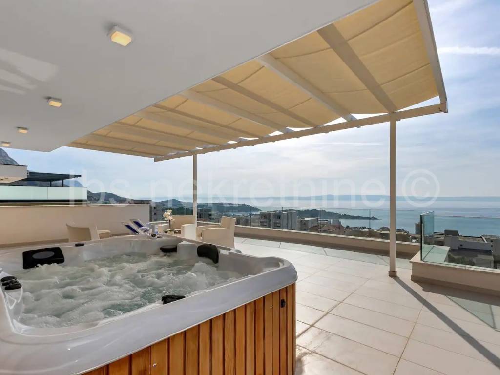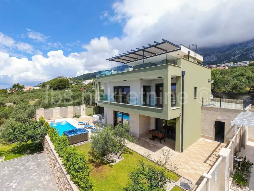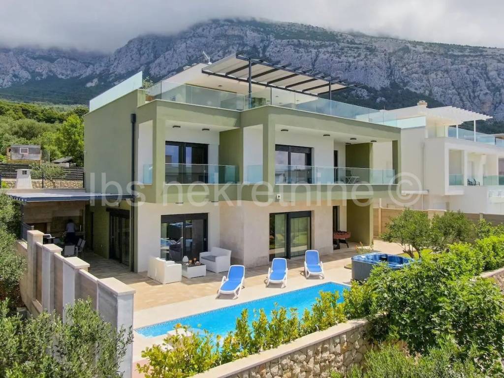 We mediate the sale of luxury villas in Makarska This beautiful villa offers everything you need for a perfect vacation: Spacious living room for relaxation Modern equipped kitchen Comfortable dining room for family meals Four rooms, each with its own bathroom, TV and Wi-Fi access Additional guest toilet The villa boasts an impressive outdoor space that includes: Large yard with swimming pool and jacuzzi A beautiful green area for outdoor relaxation Seating terrace and outdoor fireplace, ideal for grilling and socializing On the last floor of the house there is: Sauna and jacuzzi for relaxation Bathroom, mini-bar A large terrace for sunbathing and sitting with a beautiful view of the entire city of Makarska Additional benefits include: Four parking spaces behind the house Daikin heat pumps for heating and cooling all rooms Boiler room with a central boiler of approx. 300 liters A storage room of approx. 16 m2 that is decorated and can be turned into a mini fitness with three machines The total area of the house with terraces is approx. 315 m2. This villa provides luxury and comfort for an unforgettable stay. Dear customers, Viewing the property is possible after signing the agency agreement on mediation and in accordance with the Act on Real Estate Transactions and the Act on Personal Data Protection.