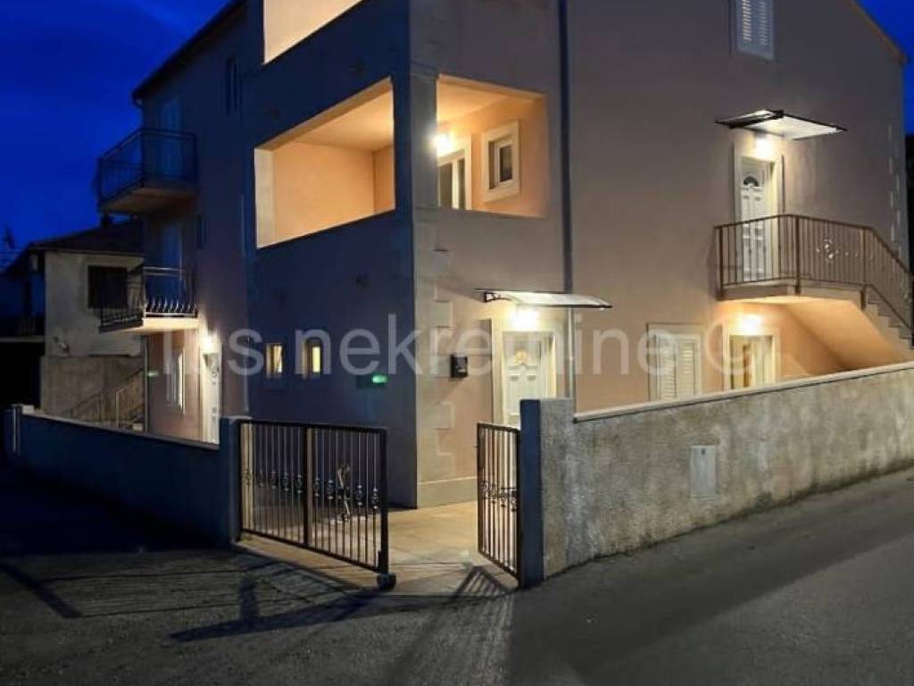 Ekskluzivna prodaja agencije IBS nekretnine!! Posredujemo pri prodaji nove samostojeće kuće na lijepoj lokaciji koja se sastoji se od tri etaže! Prizemlje se sastoji od dva jednosobna apartmana. Velike ostave, te još jednog prostora koji je u roh bau izvedbi od kojeg se može napraviti apartman ili poslovni prostor po potrebi. Prvi kat se sastoji dva jednosobna apartmana sa kupatilom i blagovaonicom istočne orijentacije. Također sa zapadne strane isto jedan jednosobni apartman. Drugi kat ili visoko potkrovlje se sastoji od tri spavaće sobe od kojih je jedna master room, 2 kupatila i jedan toalet, zatim prostranog dnevnog boravka sa kuhinjom i blagovaonicom sa izlaskom.na veliki balkon. Na kući su ugrađeni solarni paneli, koji će uvelike smanjiti račune struju, grijanje i vodu! Prekrasan pogled na more sa svih balkona! U kući se mogu napraviti i preinake po želji budućeg vlasnika. Velika prednost ove nekretnine je što nitko nije živio u njoj i kuća je novoizgrađena. Mirna lokacija, a centar je jako blizu i plaža. Svaka etaža ima centralno grijanje na lož ulje. Parking ispred kuće. Uporabna dozvola. Kuća je velikog potencijala, za život i za najam!