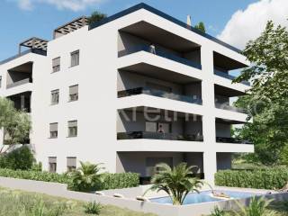 We are selling a comfortable two-bedroom apartment in a great location only 4 km from the UNESCO city of Trogir in the southern part of Okrug Gornji. The apartment located on the first floor consists of two bedrooms, a bathroom, a storage room, a living room, a kitchen with a dining room, a balcony and a parking space.