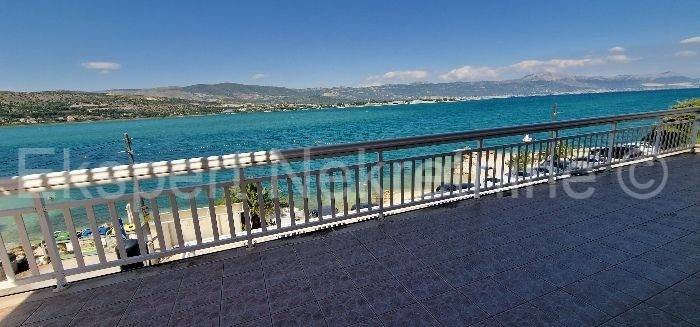 Trogir,Mastrinka,samostojeća kuća 500 m2 PRVI RED DO MORA ! .Kuća ima otvoren pogledom na more sa svih etaža.Sastoji se od jednog velikog poslovnog prostora u suterenu direktno na cesti.,dok se na visokom prizemlju nalaze tri manja jednosobna apartmana sa velikom terasom prema moru,a na prvom i drugom katu se nalaze dva velika dvoetažna trosobna stana svaki sa velikom terasom na donjoj i gornjoj etaži sa kojih se pruža lijep i neometan pogleda na more i plažu koji su odmah ispred kuće.Kuća je potrebno adaptirati..Vlasništvo uredno.Za više info kontaktirati agenciju.
