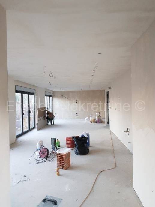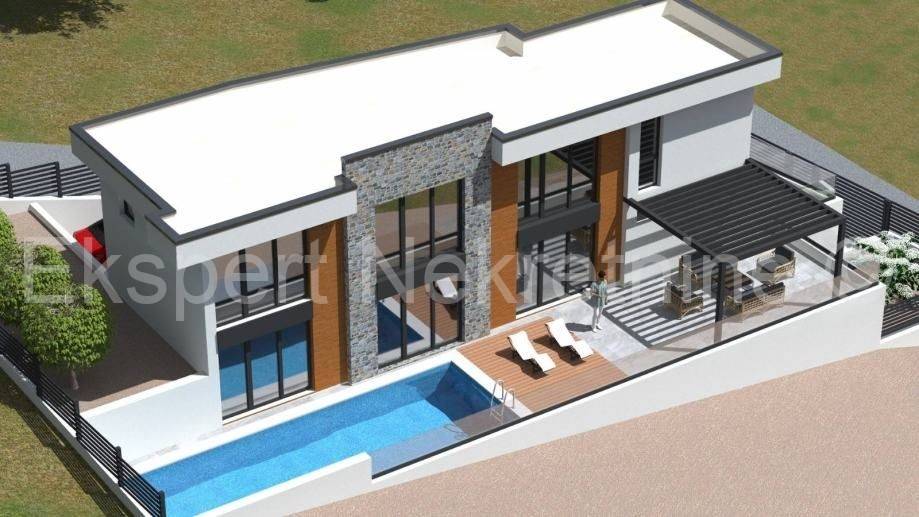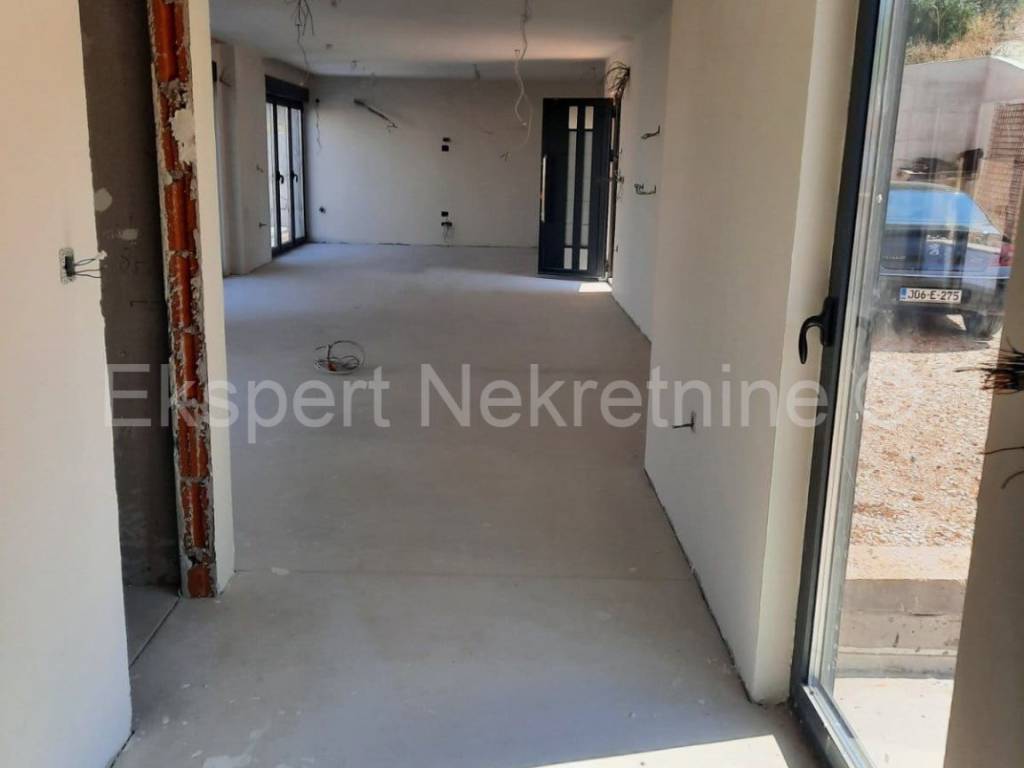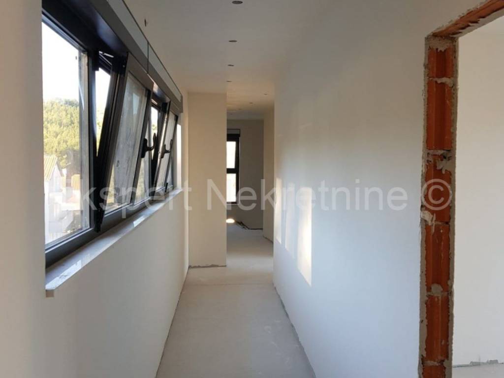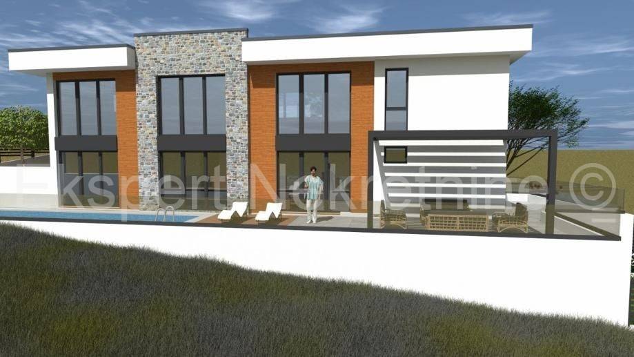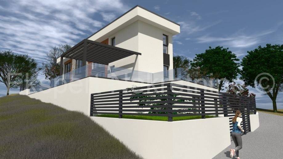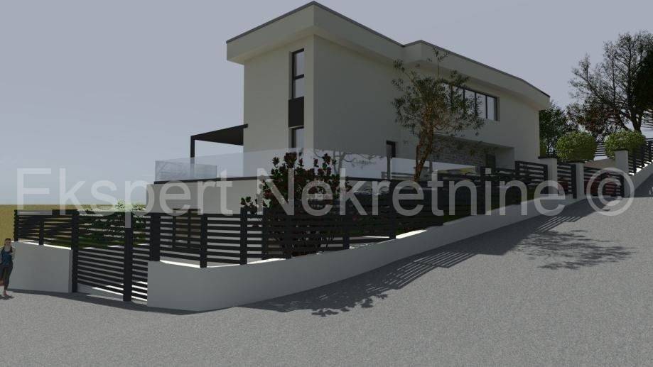Čiovo, Slatine, modern villa with sea view and swimming pool positioned in an attractive location in Čiovo, 270 mdistance from the sea. The property with a living area of 233 m2 is positioned on a plot of land of 400 m2 and consists of a basement,ground floor and first floor. The basement floor of 45 m2 has a sauna, hydromassage bath, walk-in shower and toilet. Above this floor there are two terraces, a smaller terrace of 23 m2 and a roof terrace of 107 m2 from whichimpressive sea view. The ground floor of 93 m2 consists of an open concept kitchen with dining room and living room and a bathroom. An internal staircase leads to the first floor of 95 m2 where there are three bedrooms with private bathrooms. The outdoor part is enriched with a swimming pool with a sunbathing area and a covered part with a pergola where the outdoor area is locateddining room. It has a parking space.An attractive offer is the location, which is within walking distance of the beach, 10 minutes' drive from Trogir, and45 minutes from Split.