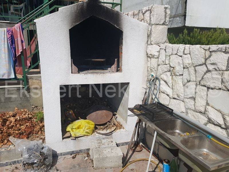Marina, Poljica, semi-detached house 160 m2, first row to the sea, in nature, a four-room two-story apartment with two large terraces, a storage room and a tavern, and a garage of approx. 31 m2. The house is located in the first row to the sea, and has an open view of the sea. The house is legalized, the ownership is in order.