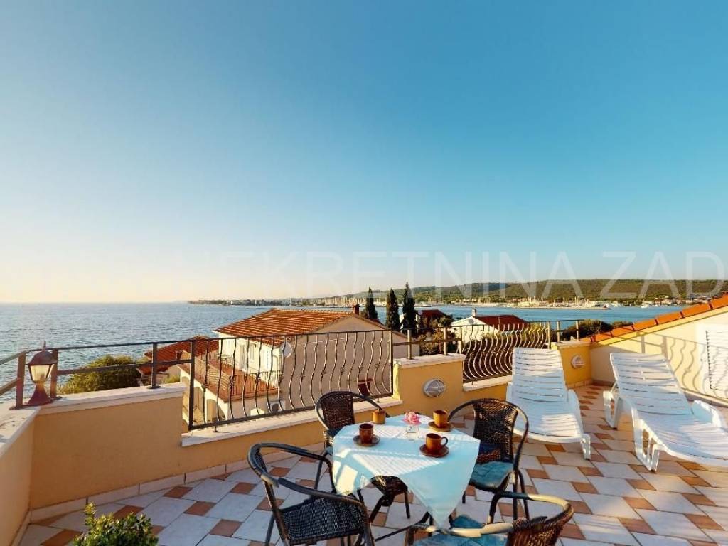 We sell a family hotel in Sukošan, the first row to the sea. In the building there are reception, nine one-bedroom and two-bedroom apartments - three on each floor, and one room in the attic. All apartments are air conditioned and have balconies overlooking the sea. At the top of the building there is a roof terrace intended for the common use of all guests, and with a beautiful panoramic view of the sea and islands. On the terrace there is a mini-bar elevator connected to the restaurant / tavern in the basement (with fifty seats). The building is located just 20 meters away from the small beach so it is an excellent location for those who want to enjoy their holiday away from the crowded beaches, yet close enough to the center (3 min drive) or a larger city (15 min).
