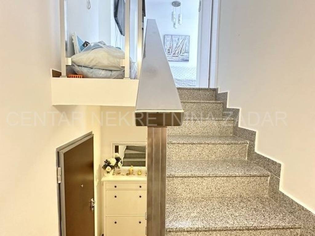 Two-storey apartment for sale in Krajon the island of Pašman. The apartment is located on the second and third floor of a new, smaller building. The first floor contains: hallway, kitchen with living room and dining room, bedroom, bathroom and balcony of 8.27 m2, north orientation. The second floor (attic) is accessed via an internal staircase, and it consists of: an entrance hall, two bedrooms, a living room, a bathroom and a balcony of 2.96 m2. The apartment has a beautiful view of the sea/beach and the Pašman channel, and the building is only 60 meters from the sea (third row from the sea). The apartment also has a covered parking space of 11.50 m2, as well as a place for a fireplace. The building was built in 2020, it has a Styrofoam facade. The entrance door of the apartment is fireproof and burglarproof. The apartment has two air conditioners. There is no chimney. The apartment is fully furnished and is being sold as such. For more information, please contact us on the number +385 99 393 6040.