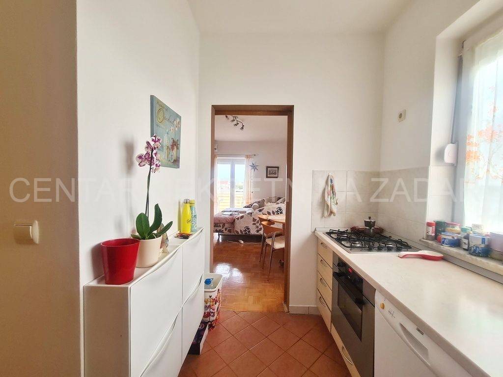 A one-room apartment is for sale in Nin in a smaller building located in the first row to the sea. The apartment is located on the 1st floor, has 45 m2 and consists of a hallway, one bedroom, a bathroom, a kitchen, a living room with a dining roomand a balcony. The heating of the apartment is provided by Mramoterm heaters/panels, and there is also the possibility of heating with wood, because thechimney has been installed in the area of the living room and the dining room, while cooling is provided by an air condition. The apartment is for sale without furniture, but it is possible to negotiate with the seller about it. The specificity of the apartment is that all its rooms offer a sea view. The apartment also has a storage room on the ground floor of the building, and parking is available in the yard. The building was built in 2005, has thermal insulation (styrofoam facade), on the ground floor there are 4 business premises, and on the first floor there are 4 residential units. The building is located in a quiet but ideal location, just a few steps from the center of town and close to all necessary amenities for everyday life, which makes this property an ideal investment for everyday life as well as for tourist purposes.