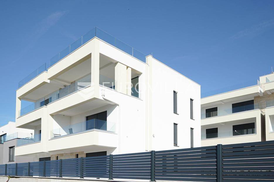 Zadar, Kožino, luksuzan dvosobni stan na prvom katu stambene zgrade, NKP 78,19 m2.Stan S3 nalazi se na 1. katu stambene zgrade, a sastoji se od ulaznog prostora, dvije spavaće sobe, kupaonice, kuhinje, blagovaonice i dnevnog boravka otvorenog koncepta površine 27,05 m2, gostinjskog wc-a/vešeraja, te loggie s koje se pruža pogled na more.Stanu pripada jedno vanjsko parkirno mjesto.U izgradnji korišteni vrhunski materijali i oprema ( dizalica toplina za grijanje i hlađenje, ALU stolarija, troslojno staklo, parket i keramika prve klase, protuprovalna vrata, klimatizirano…)Nalazi se na 250 metara udaljenosti od mora i plaže.Kožino je naselje u sastavu grada Zadra, te je dobro prometno povezano s cijelim područjem.Poznato je po šljunčanim i pješčanim plažama koje su okružene mediteranskim vegetacijom.Ova nekretnina nalazi se na izvrsnoj lokaciji te je radi položaja idealna za sve koji žele živjeti u ovom lijepom mjestu pokraj mora, ali i za sve one koji se žele baviti turizmom.Više informacija na upit.