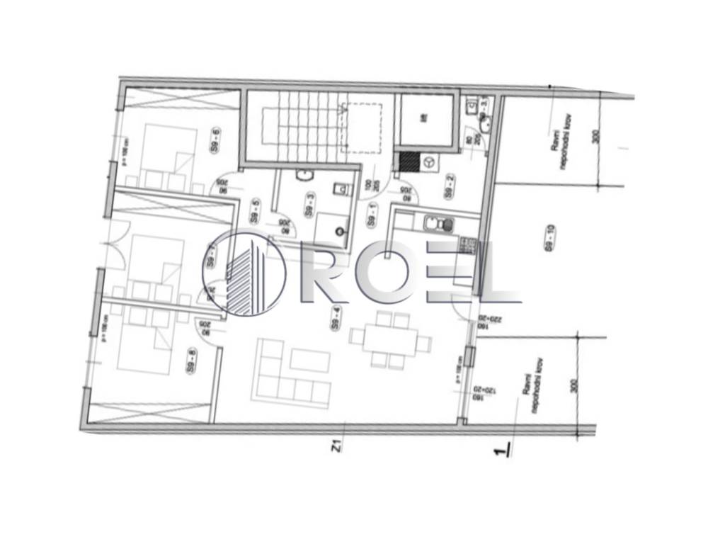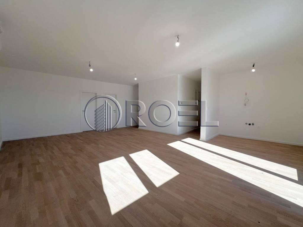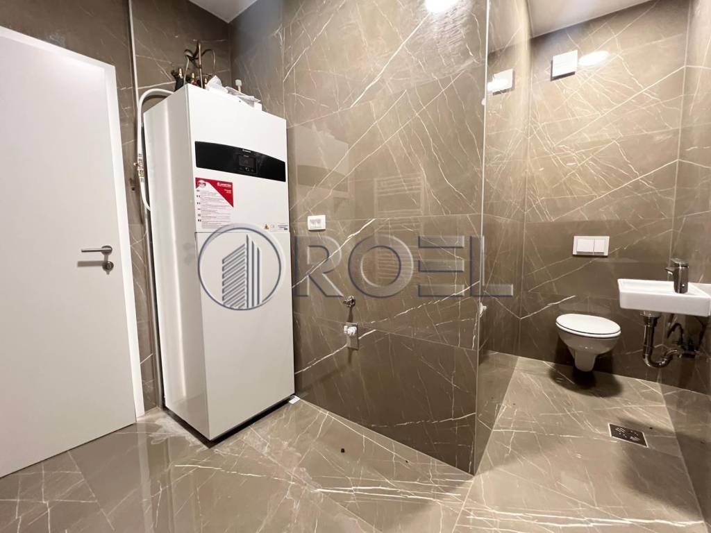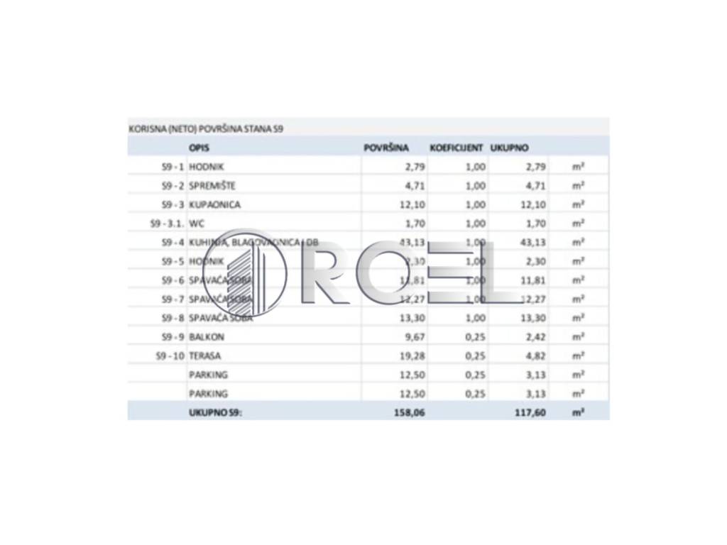 A beautiful four-room penthouse is located on the fourth floor of a new building in Ilica, NKP 117.60 m2. It consists of a hallway (2.79 m2), a storage room (4.71 m2), a bathroom with a toilet (12.10 m2), a kitchen, a living room and a dining room (43.13 m2) with access to a terrace with a view of 19.28 m2 (4.82 m2) and a balcony size 9.67 m2 (2.42 m2), three bedrooms (11.81 m2, 12.27 m2 and 13.30 m2) and toilet (1.70 m2). (4.64 m2). The apartment has two outdoor parking spaces of 12.50 m2 (3.13 m2). The living area of the apartment is 104 m2. The floor in the apartment will be covered with parquet and ceramics. The external carpentry is PVC, glazed with three-layer IZO glass, and the internal wooden veneer. External blinds are provided for protection from the sun. Electricity will be used as an energy source for heating and hot water preparation. An air-water type heat pump (underfloor heating) is provided to meet the building's total heating needs. Electricity is also used for cooking purposes.