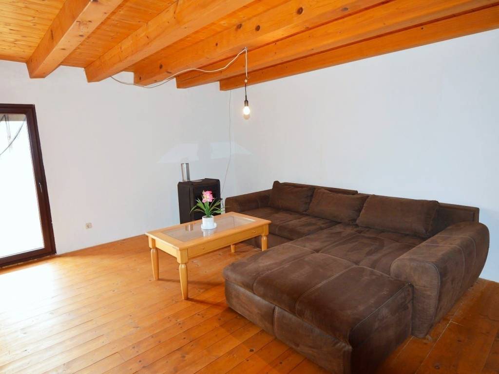 Prodajem kamenu kuću u nizu od 98 m2 sa drvarnicom od 13 m2 i dvorištem od cca.80 m2Prizemlje kuće sastoji se od ulazog trijema, kuhinje sa blagovaonom i kupatilom , stepenište vodi do kata gdje je smješten dnevni boravak sa terasom , a na drugom katu je spavaća soba. Kući pripada drvarnica od 13 m2 i parkirno mjesto te dvorište od 80 m2