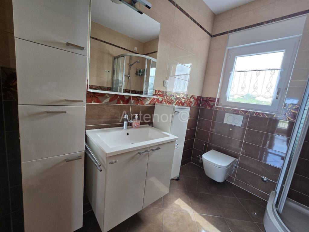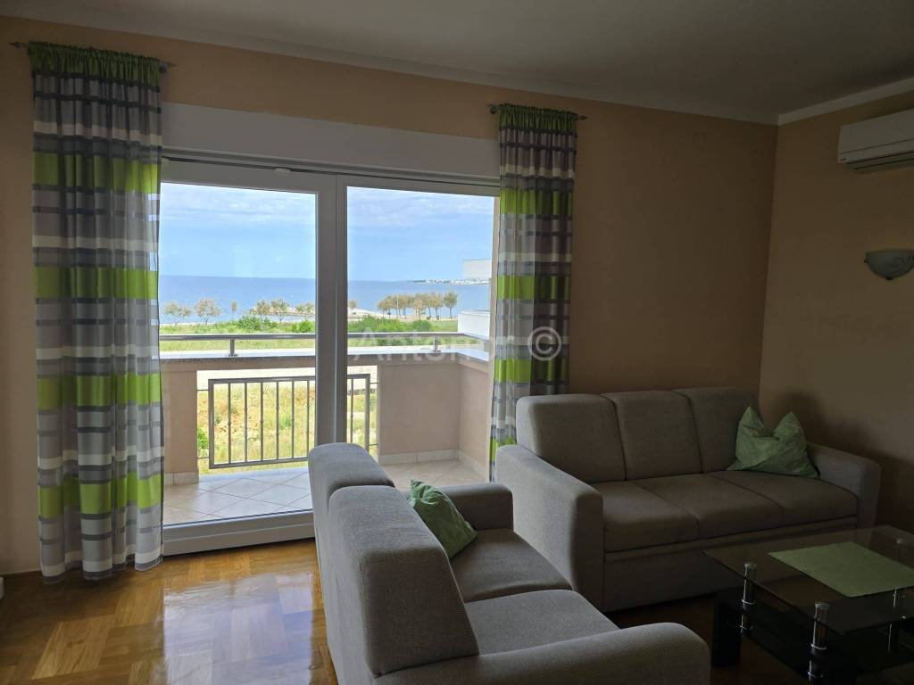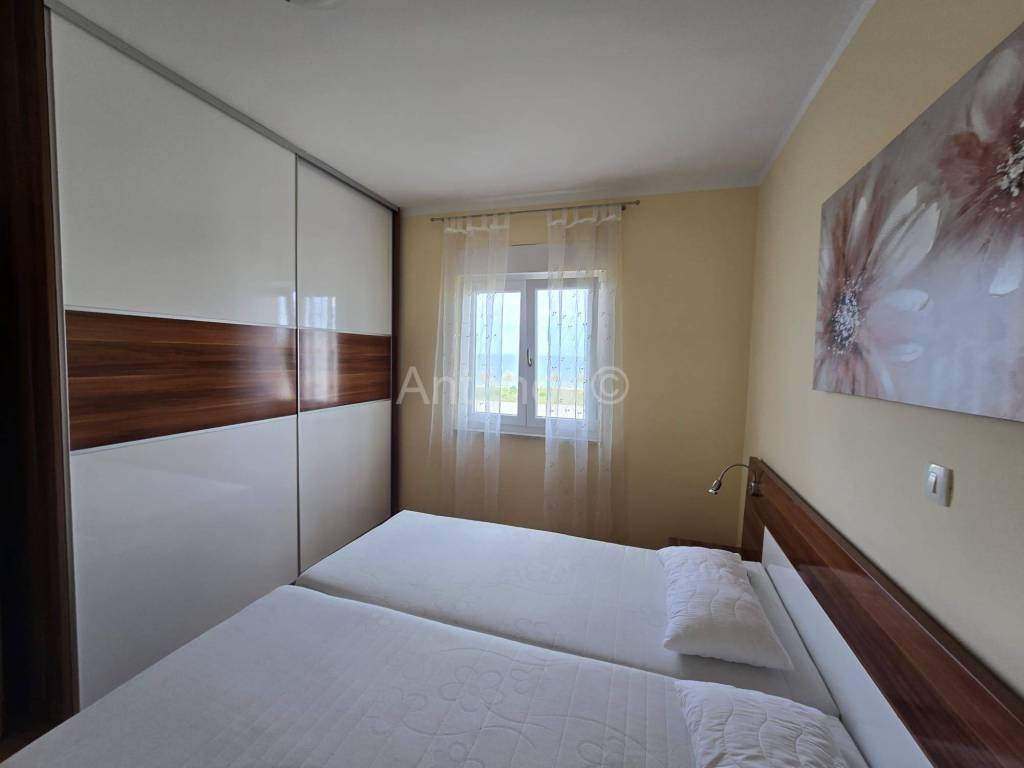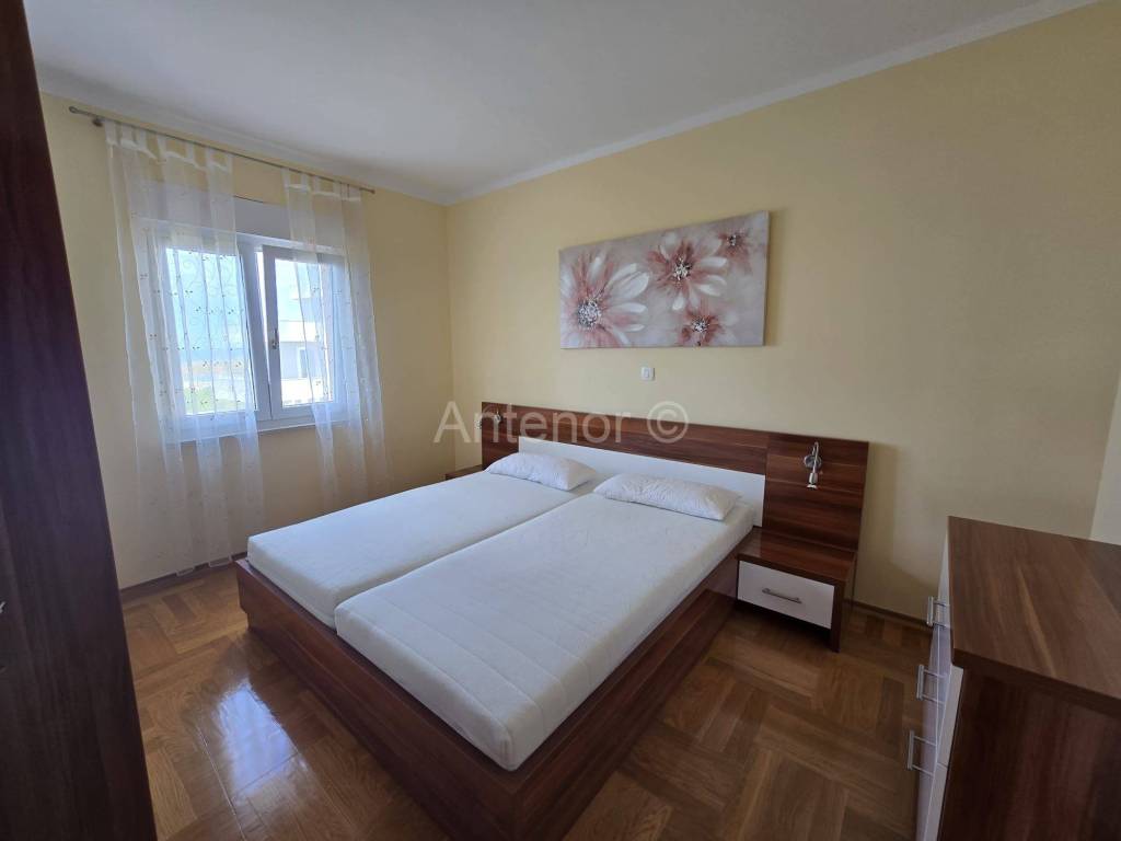 NIN-ZATON - prodaje se apartaman na 1. katu manje stambene zgrade. Apartman se sastoji od spremišta, kupaonice, dvijespavaće sobe, kuhinje, blagavaonice, dnevnog boravka, nenatkrivene i natkrivene terase ukupne korisne površine 92,10 m2. Apartmanu pripada 1 parkirno mjesto. Udaljenost od mora i plaže je 200 m. Vlasništvo uredno bez tereta.