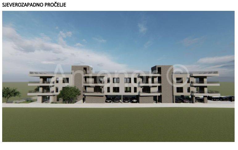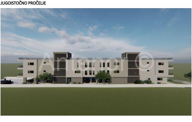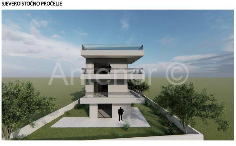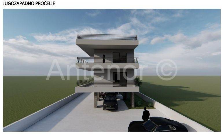 Zaton - građevinsko zemljište sa idejnim projektom za gradnju 9 stambenih jedinica. Prema projektu u prizemlju zgrade nalazi se jedna stambena jedinica, natkrivenih 7 parkirnih mjesta. Na prvom katu nalaze se 4 dvosobna stana i na drugom katu 4 dvosobna stana sa krovnim terasama. Nekretnina je udaljena 50 m od mora i plaže. Zemljište je širine 16 m i dužine cca 80 m. Nalazi se 3 red do mora. Prodaje se sa idejnim projektom. Vlasništvo uredno 1/1 u vlasništvu firme pa kupac ne plaća porez na promet nekretnina.