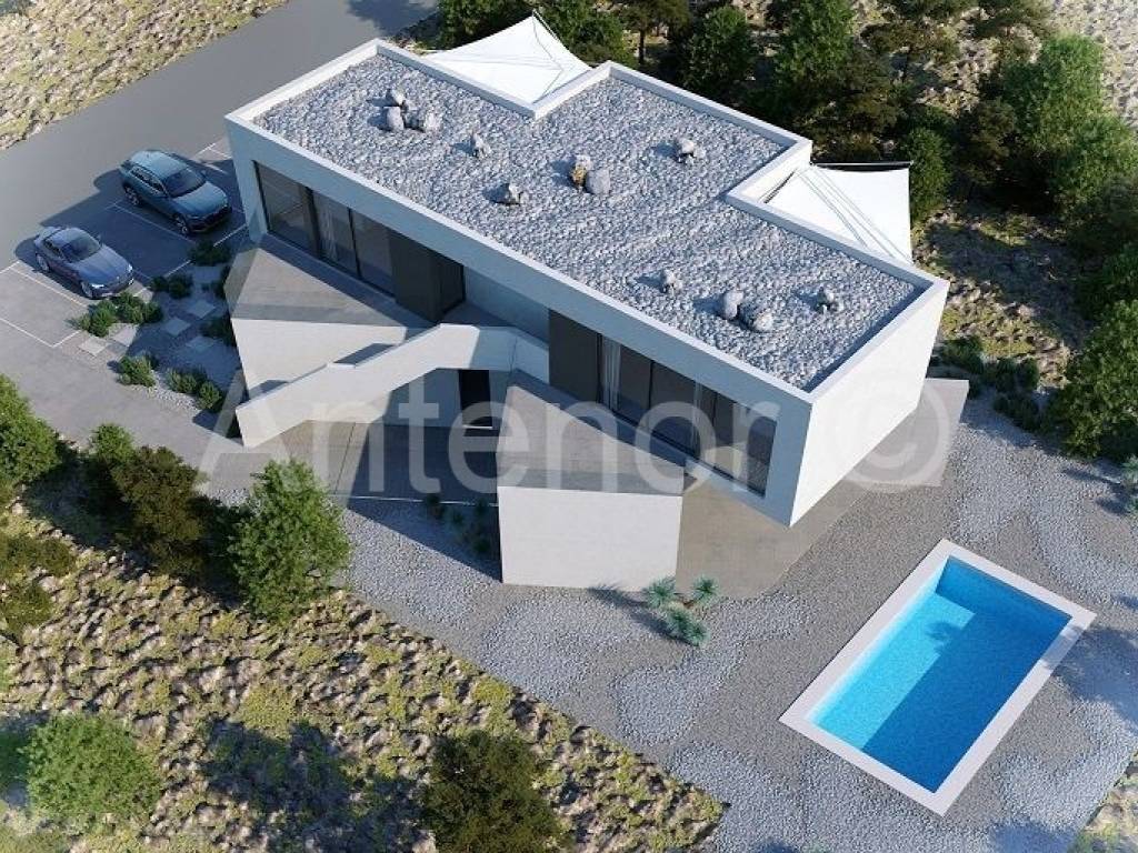 Prodaje se građevinsko zemljište sa pravomoćnom građevinskom dozvolom za gradnju četiri apartmana sa bazenom. U prizemlju zgrade je predviđen dvosoban stan površine 93,31 m2 i trosoban stan površine 107,01 m2, te na katu dva stana- dvosoban stan površine 101,37 m2 i trosoban stan površine 101,67 m2. Građevinsko zemljište površine 941 m2 se nalazi 400 metara od mora sa plaćenim svim doprinosima, struja i voda se nalaze neposredno uz teren. Vlasništvo je uredno 1/1.
