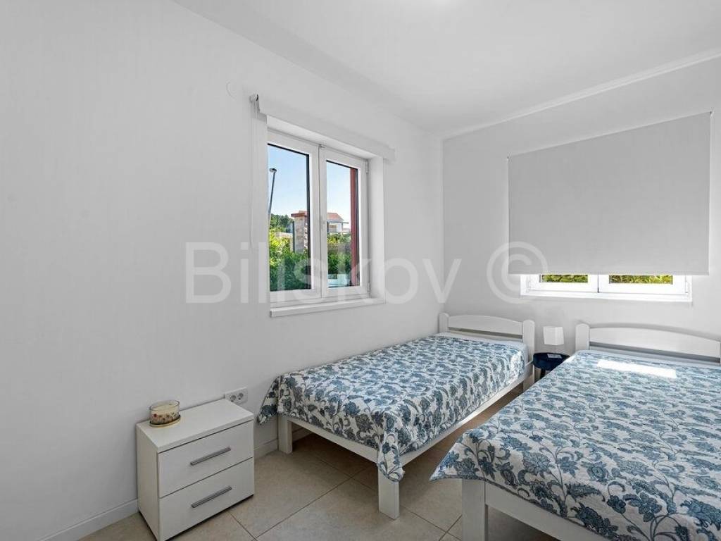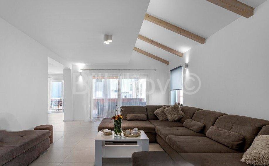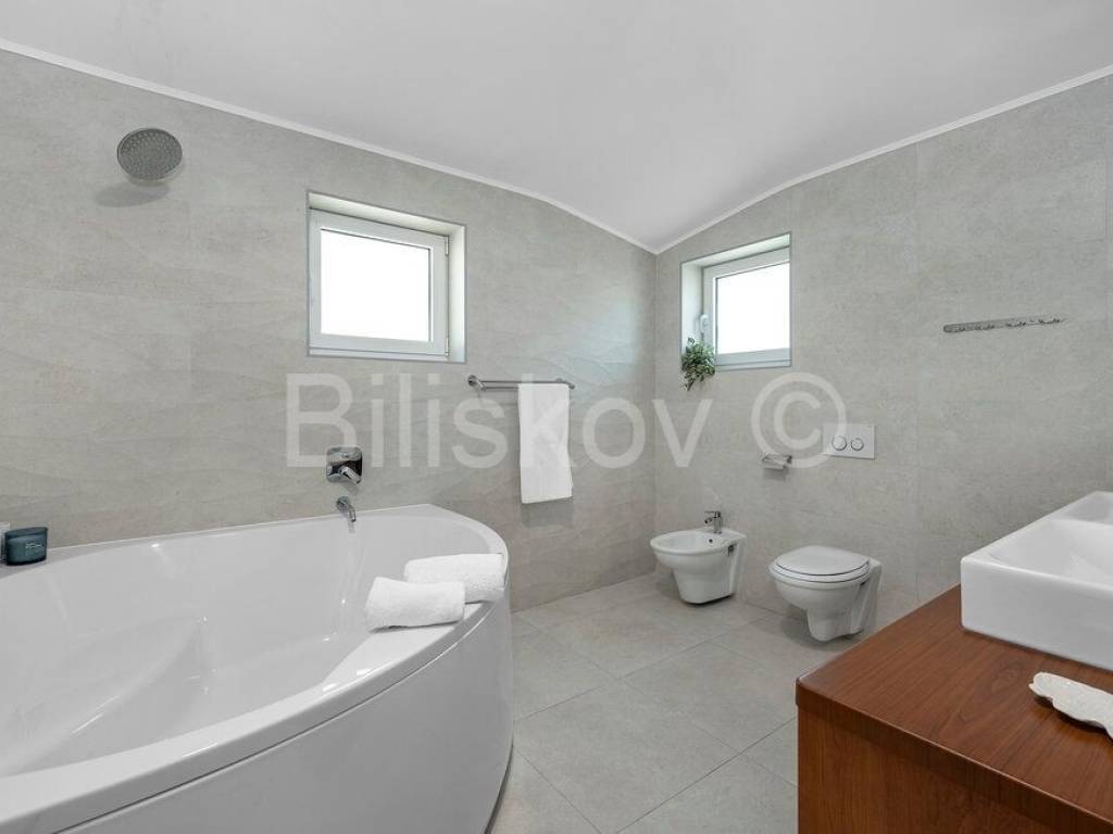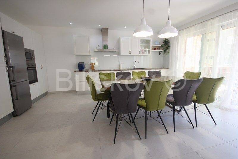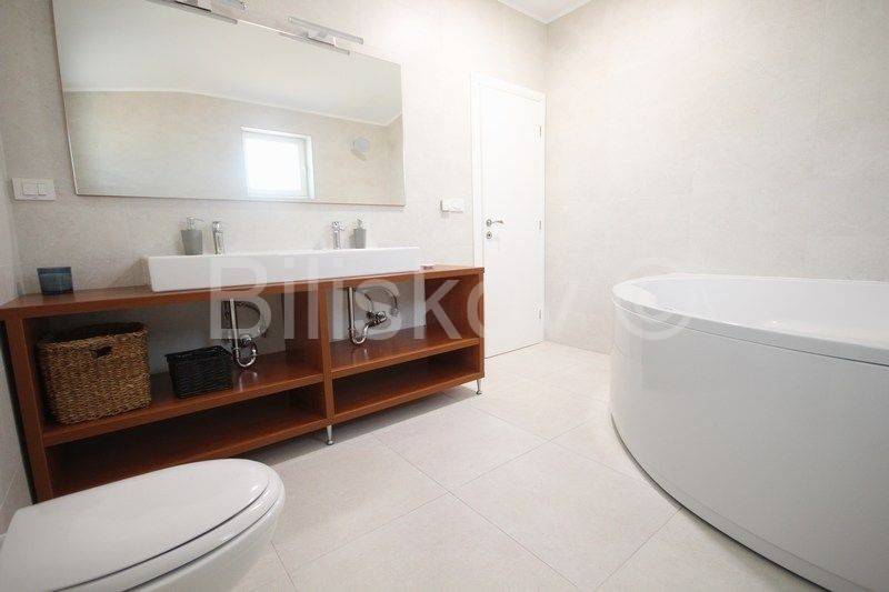 The main entrance of the house leads us to the extremely spacious ground floor where there is a living room, a modernly decorated and equipped kitchen with a dining room (together approx. 55 m2) with access to the terrace. Furthermore, on the ground floor there are two bedrooms, one with its own bathroom, a separate toilet, and a storage room. Stairs lead us to the upper floor where there are three bedrooms, two of which have access to the terrace, and two bathrooms.