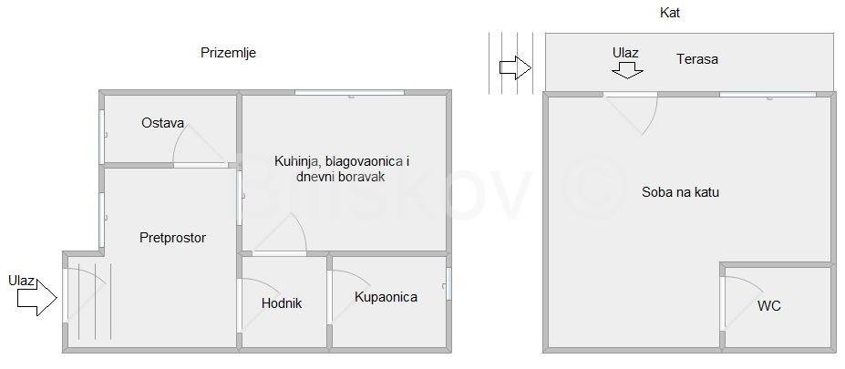 www.biliskov.com ID: 14915Dugo Selo, KozinščakA charming detached house of 60 m on a plot of 586 m.The house consists of a ground floor and an upper floor.On the ground floor, there is a kitchen with a dining area and living room, a bathroom, a storage room, and a spacious hallway.An external staircase leads to a terrace, from which you enter a spacious bedroom. There is also a separate toilet.The house has been newly renovated and is barely used.The yard is beautifully landscaped and maintained, with plenty of green shrubs, flowers, and low trees.It is ideal for a smaller family or as a weekend home near Zagreb.The location is excellent. There are two elementary schools, a kindergarten, a high school, several shops nearby, and the city center is just a 15-minute walk away.Heating: Solid fuels fireplaceEnergy certificate: In processOrientation: West-SouthPrice: 110,000Agency fee for the buyer: 2% + VAT of the purchase price.