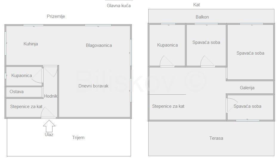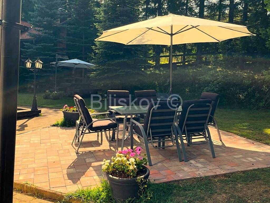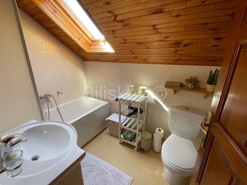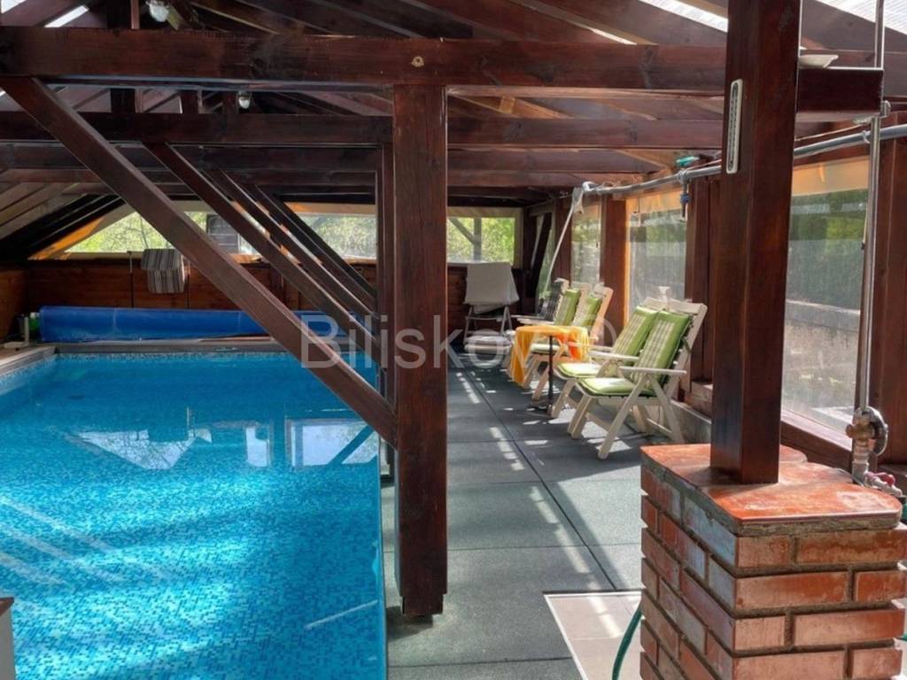 www.biliskov.com ID-14895Plitvice LakesA charming house with a surface area of 240 m and an auxiliary building of 60 m on a plot of 1,611 m.The main house consists of a ground floor and an upper floor (3 bedrooms, 2 bathrooms, living room, kitchen, terrace, and access to a porch). The house includes a pool (8x4 m) with counter-current swimming, a jacuzzi, a sauna, and a fitness area.The auxiliary building features a kitchen, dining room, living room, bathroom, and an open-space sleeping area on the upper floor.Heating is provided by a Daikin heat pump system for underfloor heating on the ground floor and radiators upstairs.Power is supplied by a solar power plant covering 75% of consumption, with Bosch solar collectors for domestic hot water and pool water heating (28 collectors in total).Heating in the auxiliary building is pellet-based.The plot is fenced and landscaped, featuring an orchard, playground, garden shed, and rainwater collection tank.Parking space for 5 cars is available.The location is magical, surrounded by nature within Plitvice Lakes National Park. The main entrance to the park is only 8 km (11 minutes) away. The area offers pristine nature ideal for a quality retreat.The house requires no additional investment and is perfect for investment purposes.Energy certificate: In progressOrientation: West-South-NorthPrice: 420,000The agency fee for the buyer is 2% + VAT of the purchase price