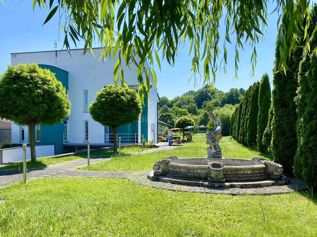 Na prostranom imanju površine 4.089 m nalazi se luksuzna vila s osam soba, dvorišni gospodarski objekt i pomoćna garaža.