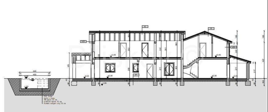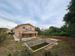 www.biliskov.com ID: 14764Island Krk, Risika, near Sv. Marek beachOn the island of Krk, in the town of Risika, two beautiful houses in the final unfinished phase are for sale, situated on two plots with a total area of 1,500 m.The larger five-room house, with a total area of 250 m on a spacious 1,100 m plot, consists of four bedrooms, a spacious living room, five modern bathrooms, a playroom, and a luxurious kitchen.The smaller three-room house, with a total area of 150 m on a 400 m plot, consists of three bedrooms, a living room, three bathrooms with toilets, and a terrace.Both properties are additionally equipped with built-in wardrobes, satellite TV, and underfloor heating throughout, providing a comfortable temperature year-round.In front of the house, there is a 50 m pool, a perfect place to relax and enjoy warm summer days.