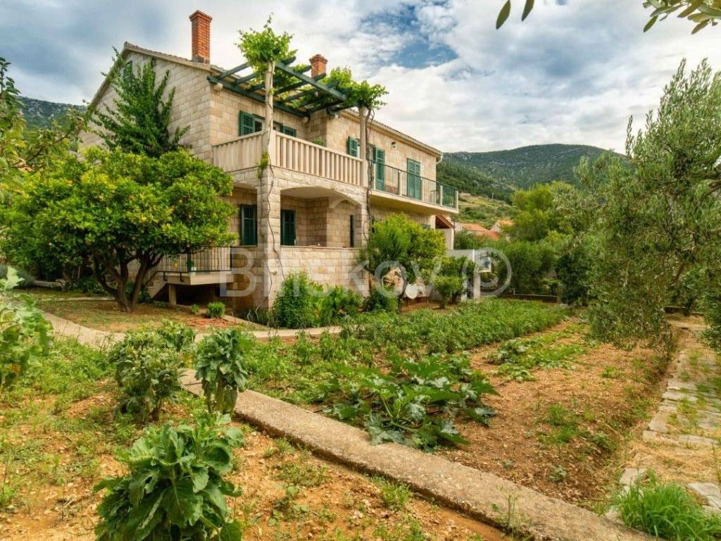Brač, Bol, stone house with a floor plan of 186m2 on a plot of 1983m2. The house is in a great location, it is possible to build two more houses, each of which would retain privacy, which further increases the value of this offer.