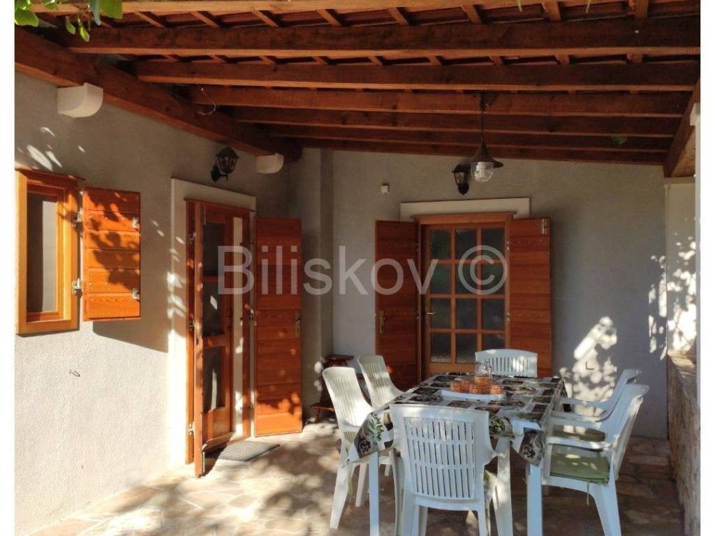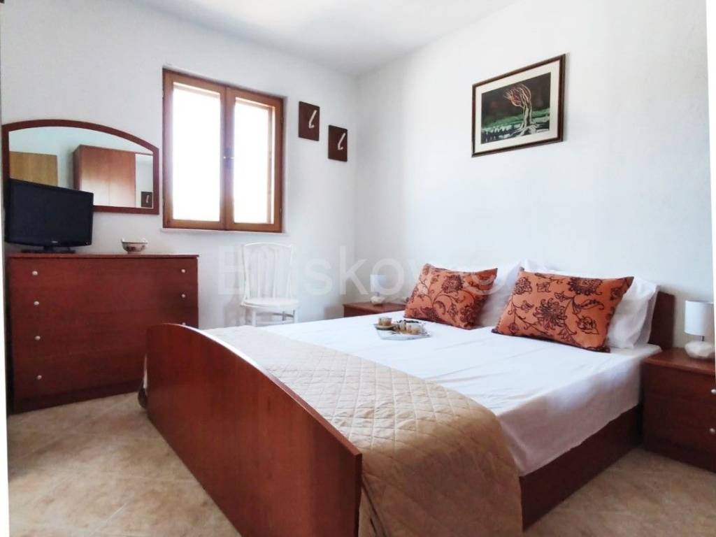 Položena na parceli od cca. 580 m2, okružena borovom šumom, maslinama, uređenim vrtom, kamenim zidovima, sa direktnim pristupom moru.