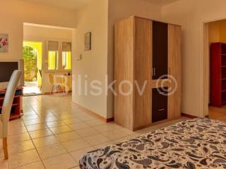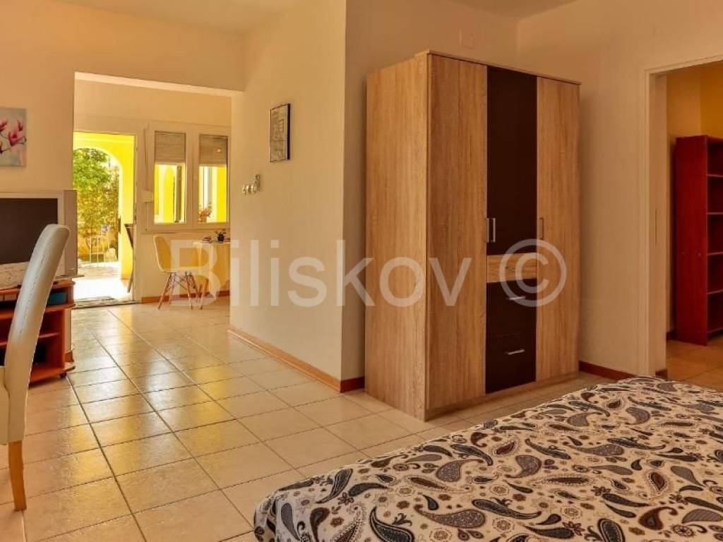 The villa consists of a ground floor, a first floor and an attic. The ground floor has a total area of 150 m2 and consists of 3 decorated studio apartments. Each apartment has its own kitchen, bathroom with toilet and balcony. On the first floor there is a large apartment of 150 m2 consisting of 4 rooms, kitchen, bathroom, toilet and two balconies. The attic is in the roh-bau stage and can be arranged according to the wishes of the future owner.