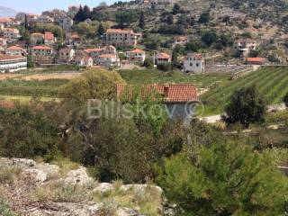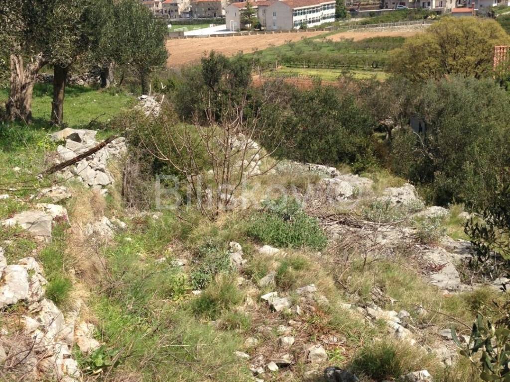 Brač, Postira, građevinsko zemljište površine 1219 m2 na kaskadnom terenu s pogledom na Postire i more.