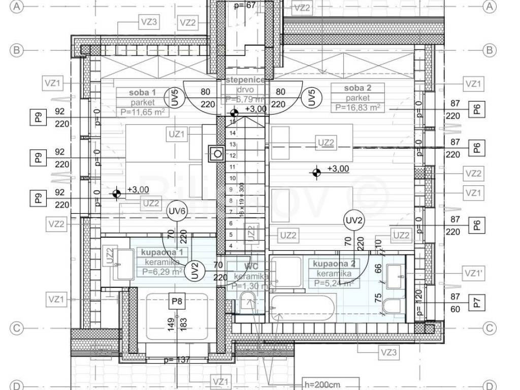 The villas consist of an entrance hall, living room with dining room, kitchen, pantry, wardrobe and toilet on the lower floor, while on the upper floor there are two bedrooms with private bathrooms.