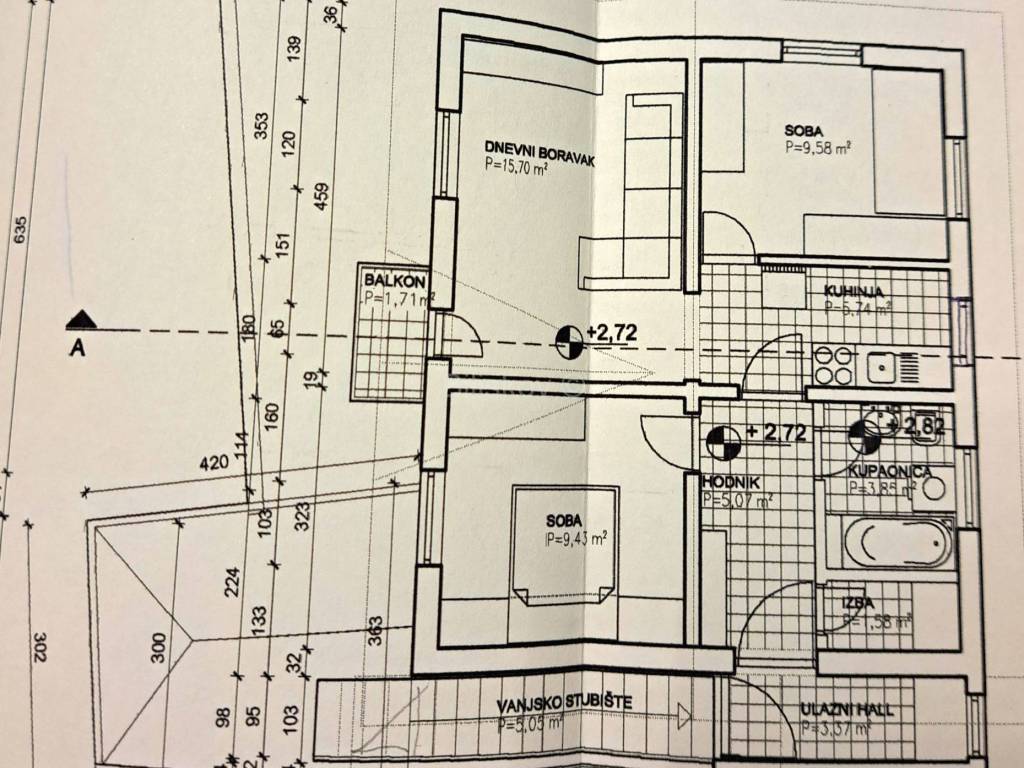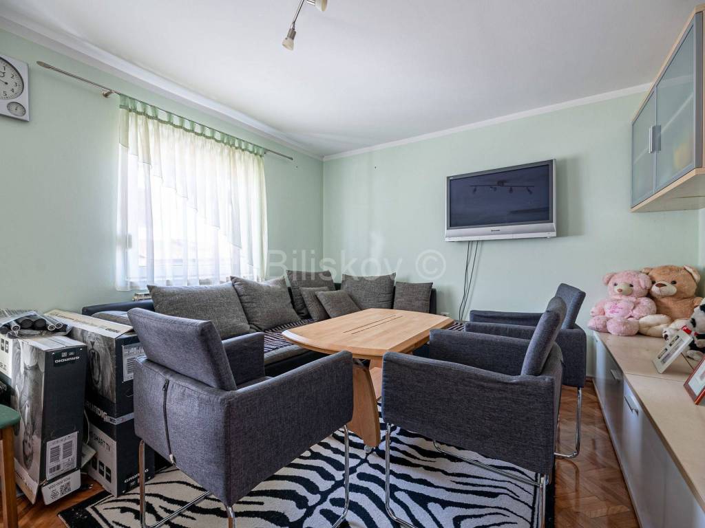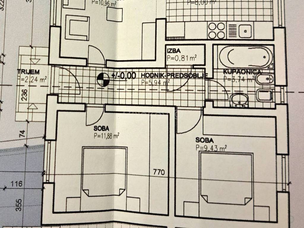 The apartment on the first floor consists of an entrance hall, hallway, living room and dining room, kitchen, storage room, balcony, two bedrooms and a bathroom. Total 71.16 m2.