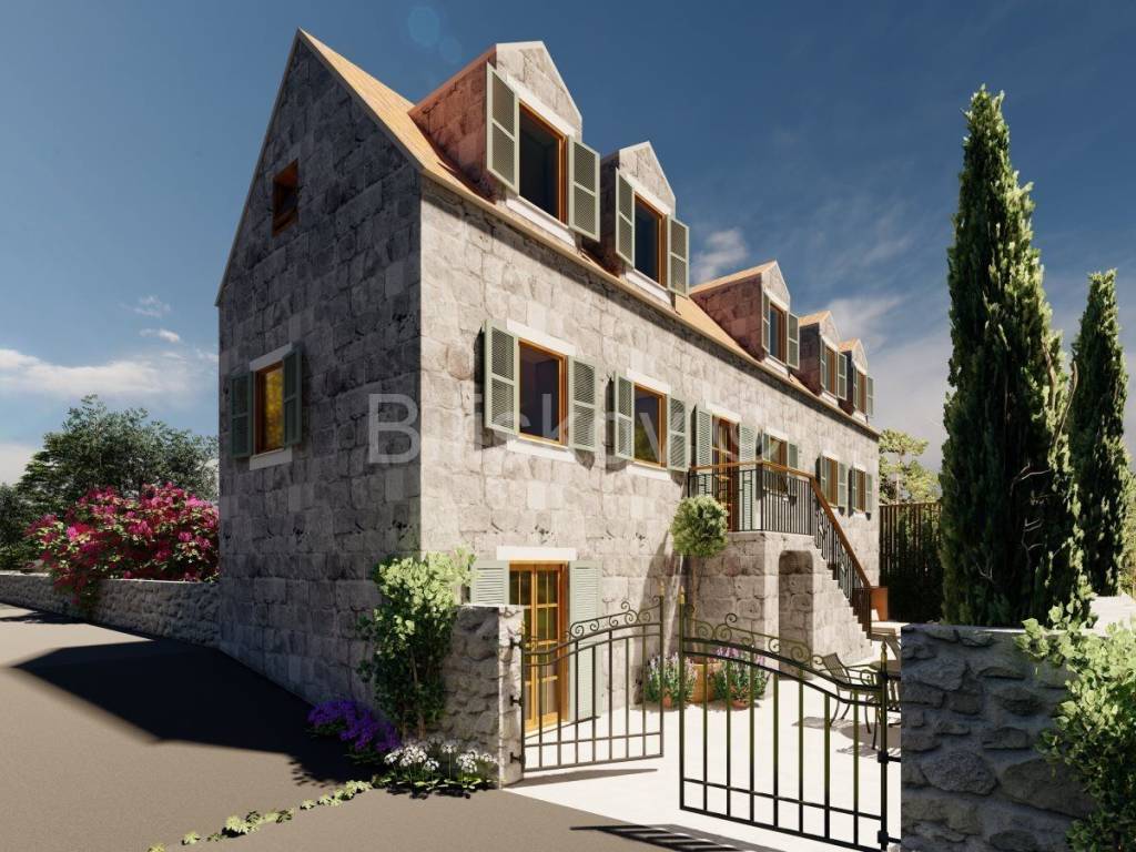 Kamena kuća površine cca. 400 m2 na tri etaže + prizemnica cca. 40 m2 kao pomoćni objekt te uređen i redovito održavan maslinik.