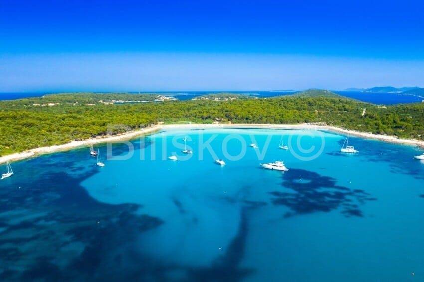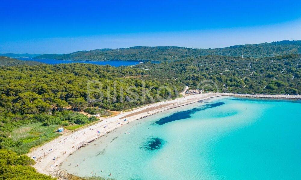 Nalazi se cca 500m od poznate pješčane plaže Sakarun koja je duga 300m i specifična je po bjelini pjeska i čistoći mora.