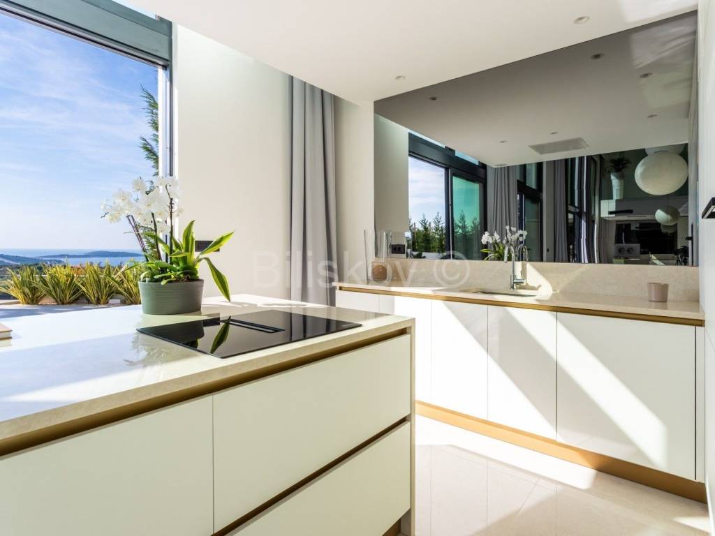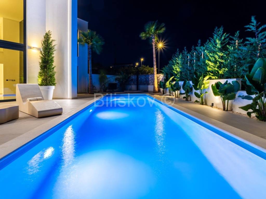 This spectacular villa is located in an exceptional location in the residential part of Primošten, offering open, panoramic views of the sea, the charming old town of Primošten and the surrounding islands. Surrounded by lush Mediterranean greenery that further emphasizes the attractive exterior, this villa represents the perfect blend of luxury, nature and top-notch design.