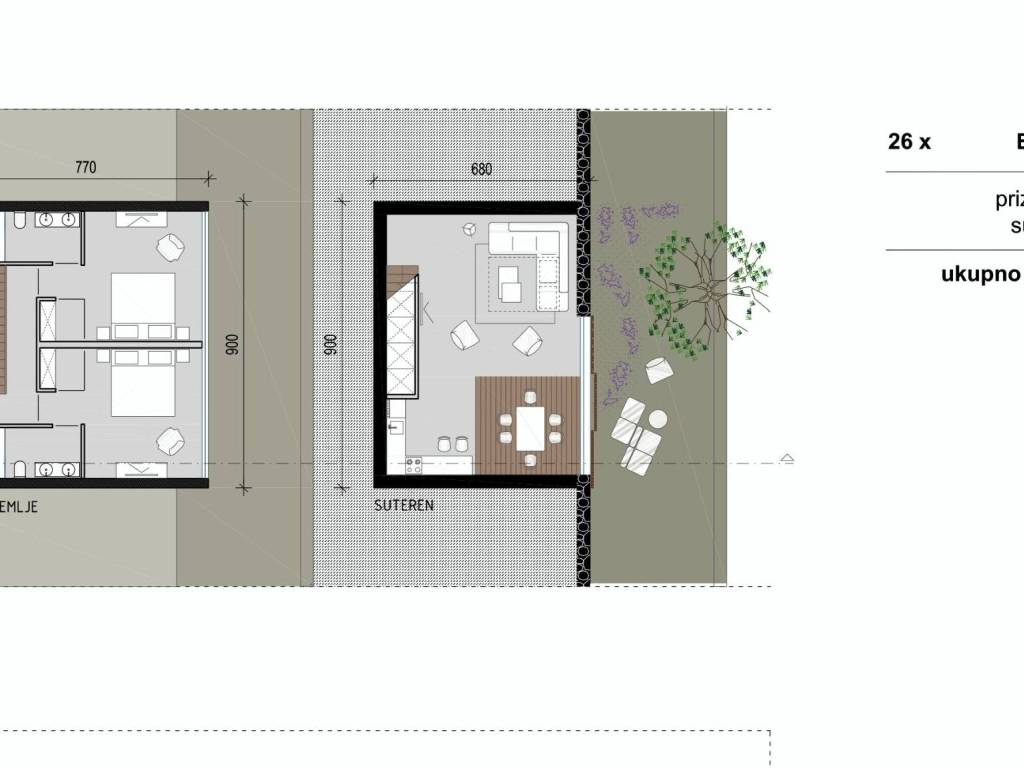 Projekt turističko naselje otok Krk - hotel (70 soba) + 60 bungalova + sportsko-rekreacijska zona, na parceli površine 75700 m2 = 4.250.000 EUR