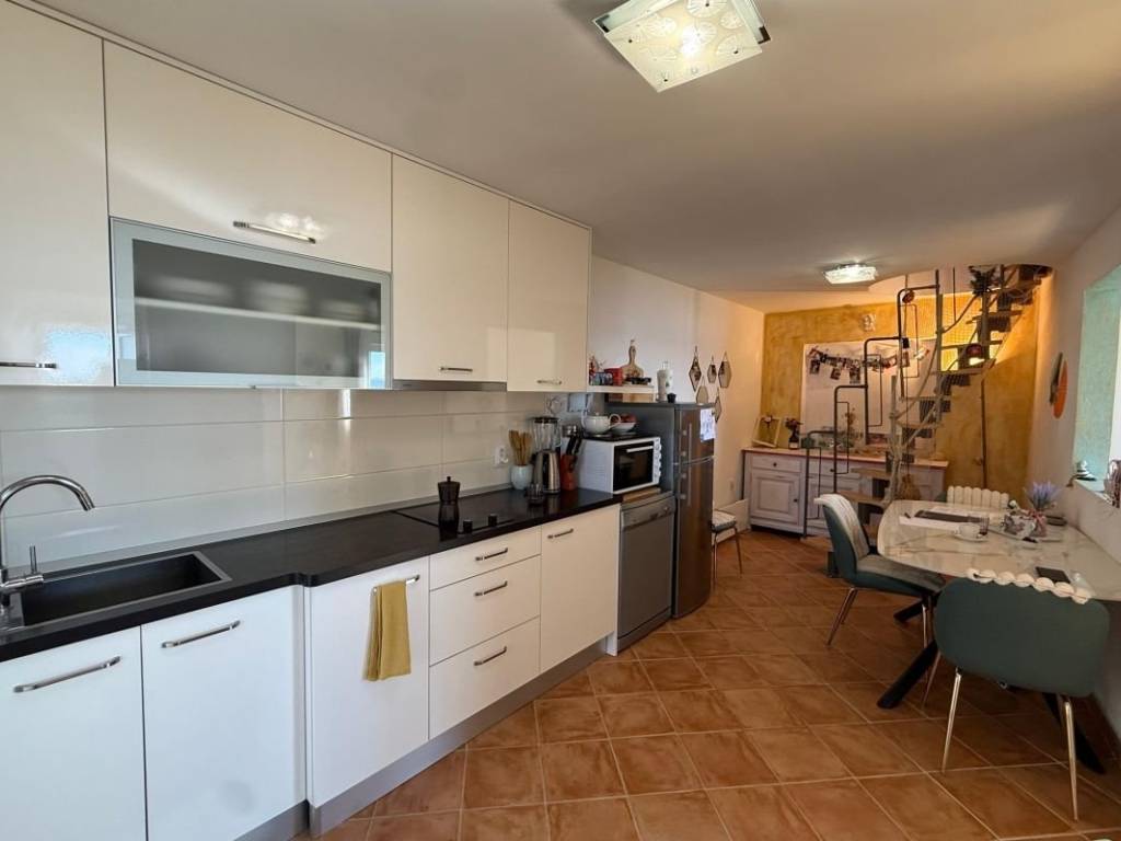 A house in an intimate location offering an open, unobstructed view of the sea. The property has a total living area of 115 m² and is situated on a plot of 35 m². The house is spread over three floors, divided into two separate residential units. The ground floor consists of a one-bedroom apartment that includes a kitchen, living room, one bedroom, and a bathroom. Outdoor stairs lead to the first floor, which has its own private entrance. The first and second floors form a two-level apartment connected by an internal staircase. On the first floor, there is a kitchen, dining room, living area with an open sea view, and one bedroom. The second floor features a gallery with a sleeping area, bathroom, and relaxation space. From this gallery, there is access to a large terrace offering an incredible panoramic view of the sea and nearby islands. In addition to the main house, there is also an auxiliary building of approximately 17 m², currently used as a laundry room and storage space. Near the house are also two small agricultural plots that serve as a garden for growing seasonal vegetables. Thanks to its unique location, breathtaking sea and island views, and beautiful natural surroundings, this property represents an exceptional choice both as a family summer residence and as a reliable investment in tourism rental business.