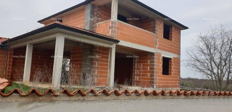 HOUSE FOR SALE - ROH BAU, ISTRA, MARČANA - village, a place of beautiful nature and peace, 15 minutes away by car from the sea and the beautiful Rakalj beach.On the ground floor there is a large living room with kitchen and dining room, one bathroom, pantry and toilet, and two covered terraces. The living room leads to a covered terrace from which access to the pool is possible.Internal stairs lead to the 1st floor, where there are 3 bedrooms and 2 bathrooms, one of which has its own bathroom. Rooms have balconies.The house is located in a quiet street where there are 3 similar buildings that have been engaged in tourist rental for years.Building plot area: 394 m2The surface of the house with a total living area of 178 m2 distributed over two floors. The building has a split floor plan with total dimensions: 12.75x10x20 m.2 above-ground garages 6.4x6 m and height 2.4 m, 2 parking spacesSwimming pool (concrete pool bed) 4x7.5x1.3 m.Ownership: 1/1.ROH BAU construction phase (earthworks, foundation walls/slabs, load-bearing and partition walls, roofing and sheet metal, electricity, water, pool bed) built in accordance with the valid construction permit issued and approved project and technical documentation, as well as all installed materials and equipment have the necessary certificates and permits prescribed for this phase of construction.The house certainly leaves enough space for decoration and conversion according to the customer"s own wishes and needs, as well as the interior and exterior design itself.This house represents an ideal opportunity for a peaceful family life, as well as a financial investment for a tourist rental.Info:Azra+385 91 611 5706+385 98 420 885azra@almadominvest.com