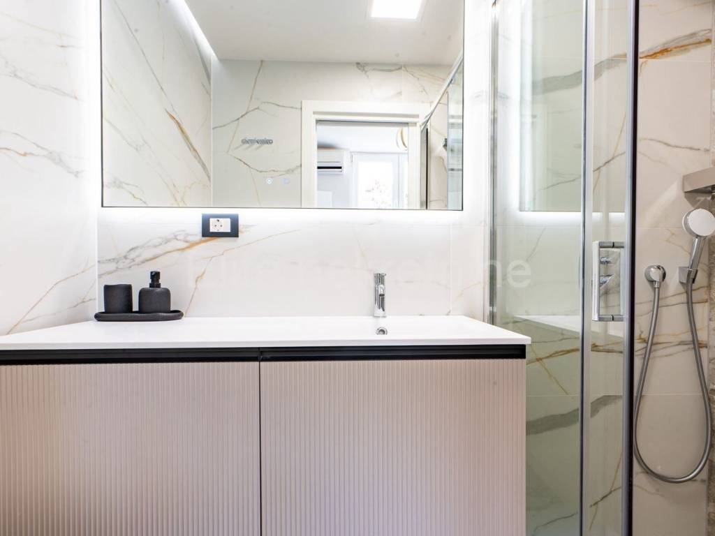 The 26 m2 apartment is located on the ground floor.It consists of: bedroom, bathroom and living room with kitchen. Completely renovated this year, everything is new (no one lived in it): electricity, water, bathroom. Oak parquet, two entrances...There are two air conditioners for heating and cooling, and there is underfloor heating in the bathroom.It was previously arranged as an office.South-oriented with a view of the sea.