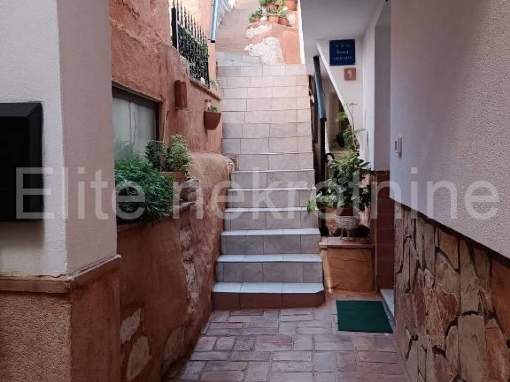 The building consists of the ground floor, first floor and second floor. The second floor of the house belongs to the second owner, who also has an apartment and is used for employees of the restaurantThe apartments are located one on the ground floor and the other on the first floor of the house, which is shared