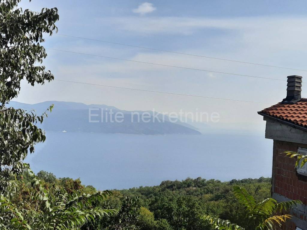 Mošćenička Draga, Brseč- a house under construction with 2 apartments, with a view of the sea, a spacious garden of 360 m2!