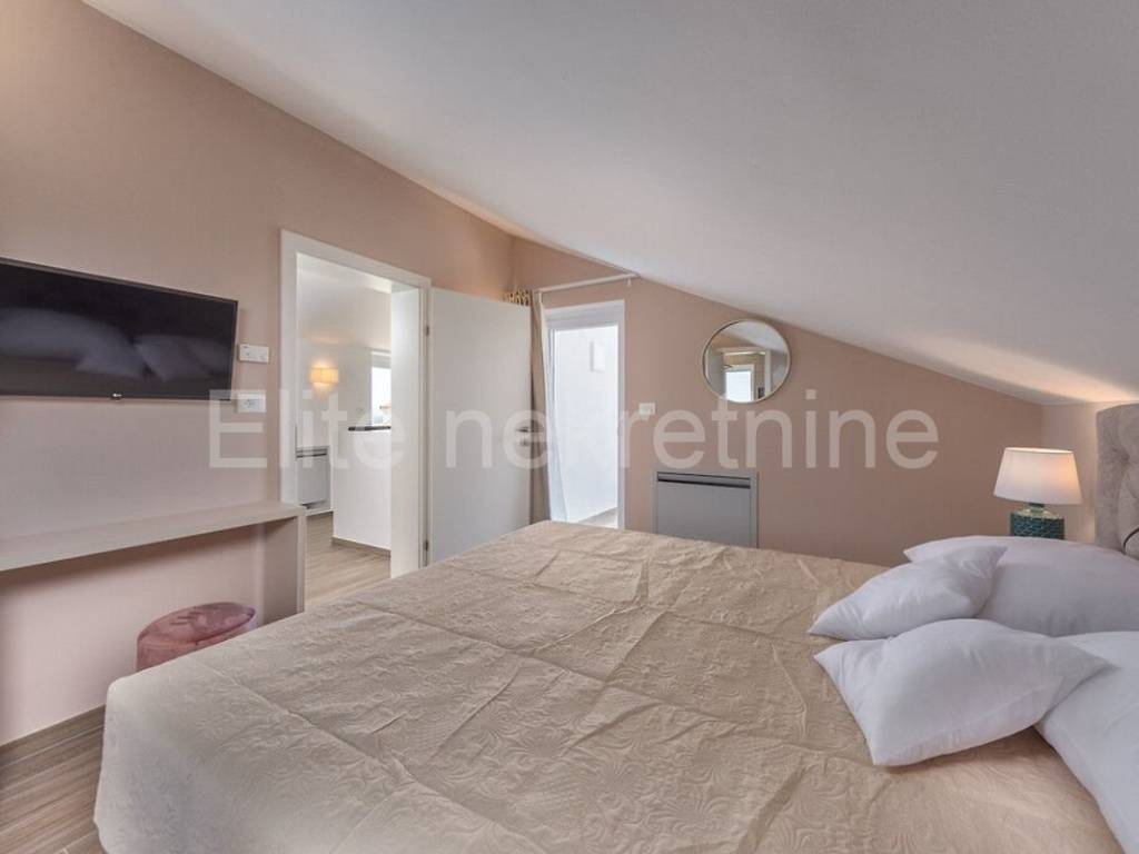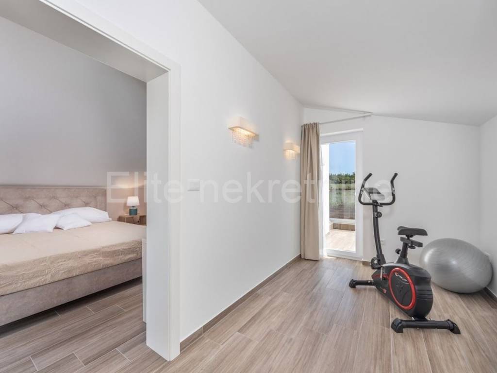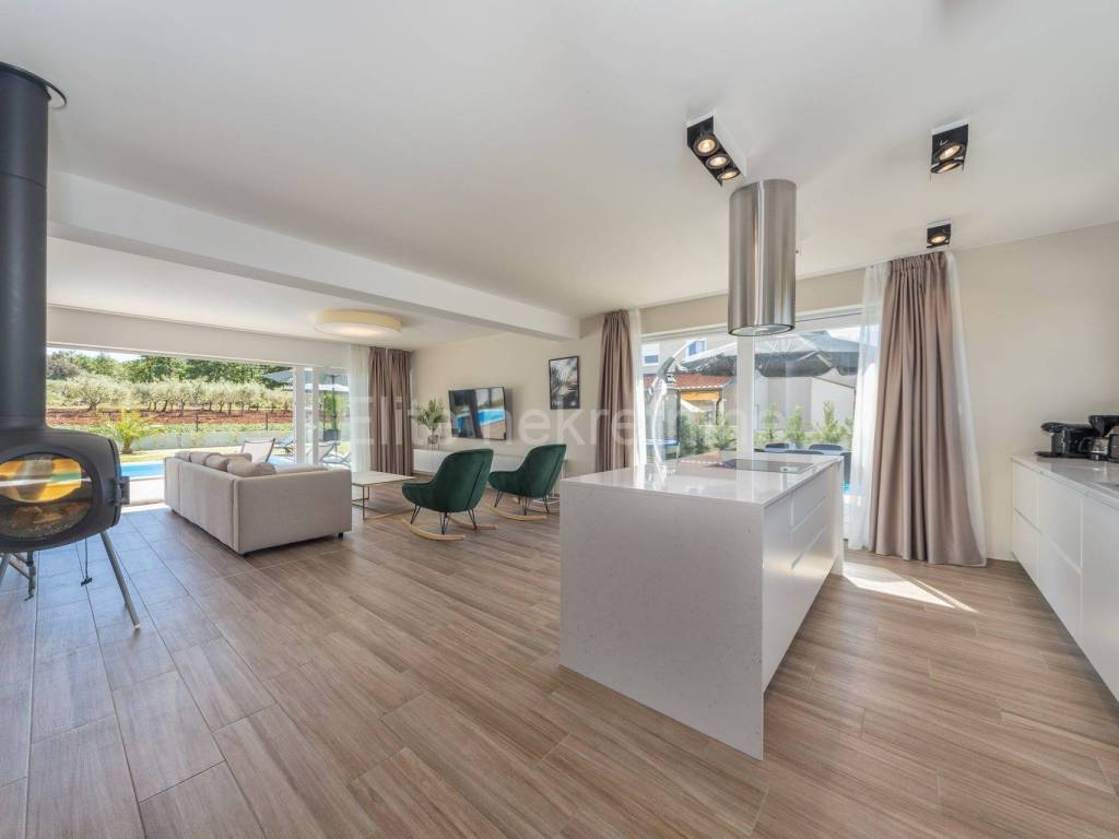 In a small town 5 km from Poreč, a beautiful villa with a swimming pool is for sale. The villa consists of two floors, ground floor and first floor. The ground floor of the villa consists of a living room, an open kitchen with a dining room and a toilet. Upstairs there are six bedrooms and four bathrooms, and from all rooms there is a wonderful view of the fairytale Istrian landscape, olive groves and the enchanting greenery of the Istrian hills.