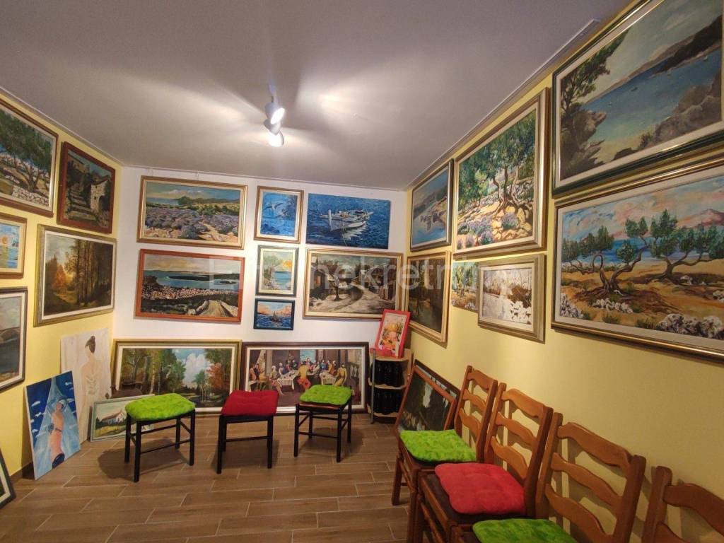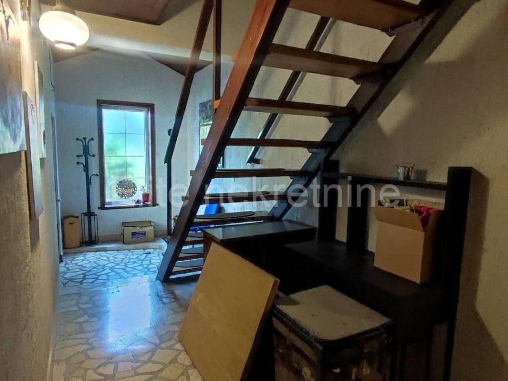 From the entrance hall you enter the garage, which currently serves as a studio, and has another separate toilet and hallway from which you go to a large room that serves as a tavern for socializing. The tavern has an entrance from the hallway and from the outside. It is decorated in a retro style, the complete house has PVC windows that were changed 3 years ago.