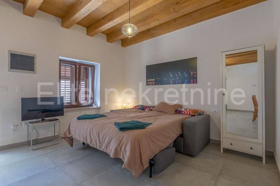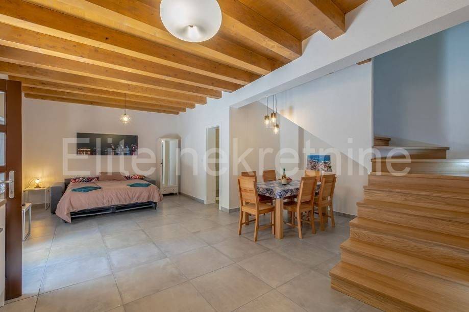 For sale is a stone house in the historic center of Pula with a beautiful garden and building land with a total area of 950m2. The house has a total living area of 240m2, but 80m2 has been renovated and is spread over the ground floor and 1st floor, while the rest of the house is a ruin that should be renovated.The part that has been renovated consists of a living room with a kitchen, 2 bedrooms, a bathroom and a terrace. Along with this property come two built projects - a hotel and a holiday home - one of which has a building permit. Opportunity for a serious investor!